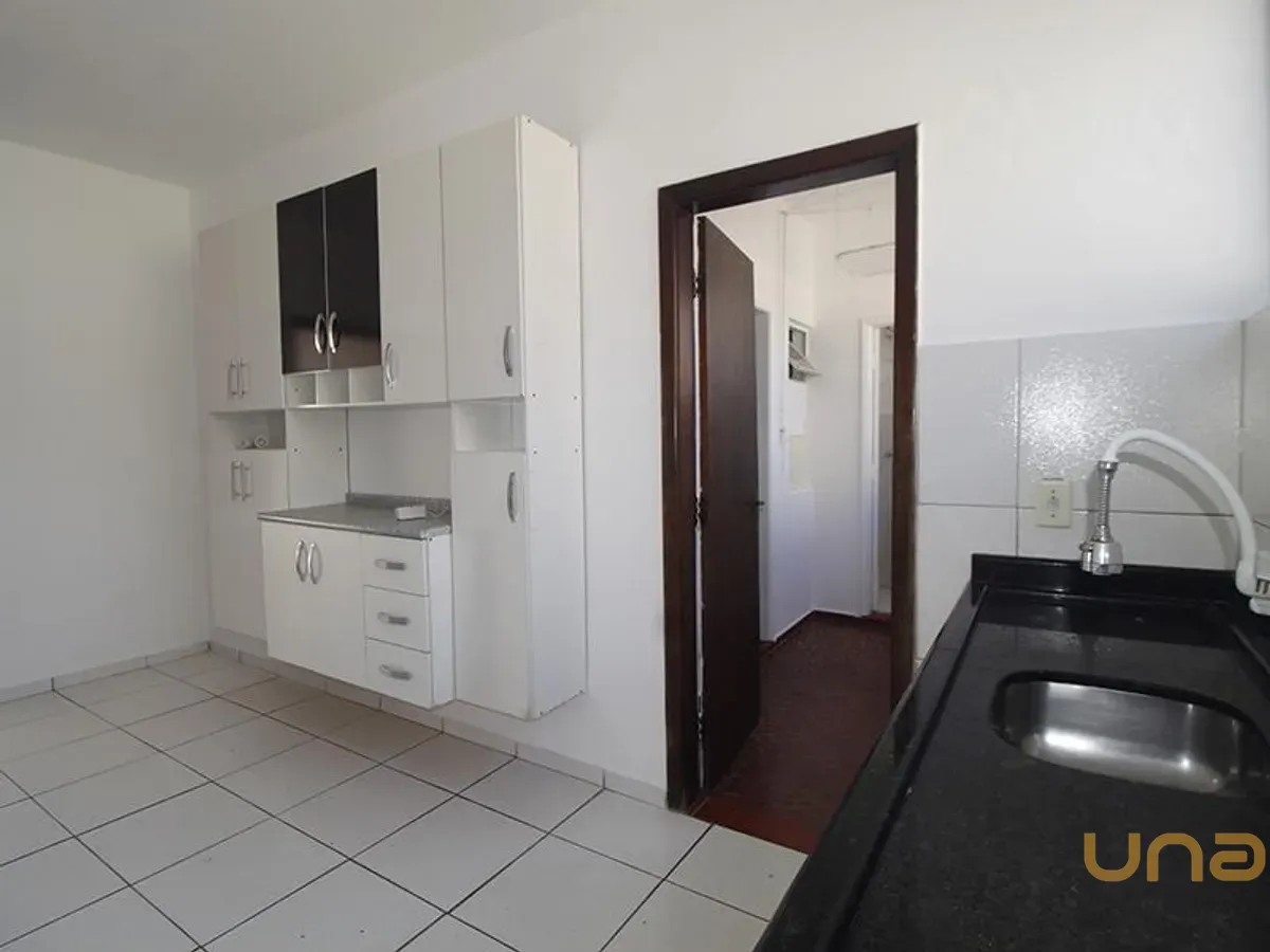 Cozinha com balcão e pia com tampo granito;