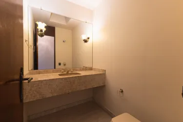 Acabamentos de alto padrão com tampos em granito em três banheiros e box em vidro em duas unidades