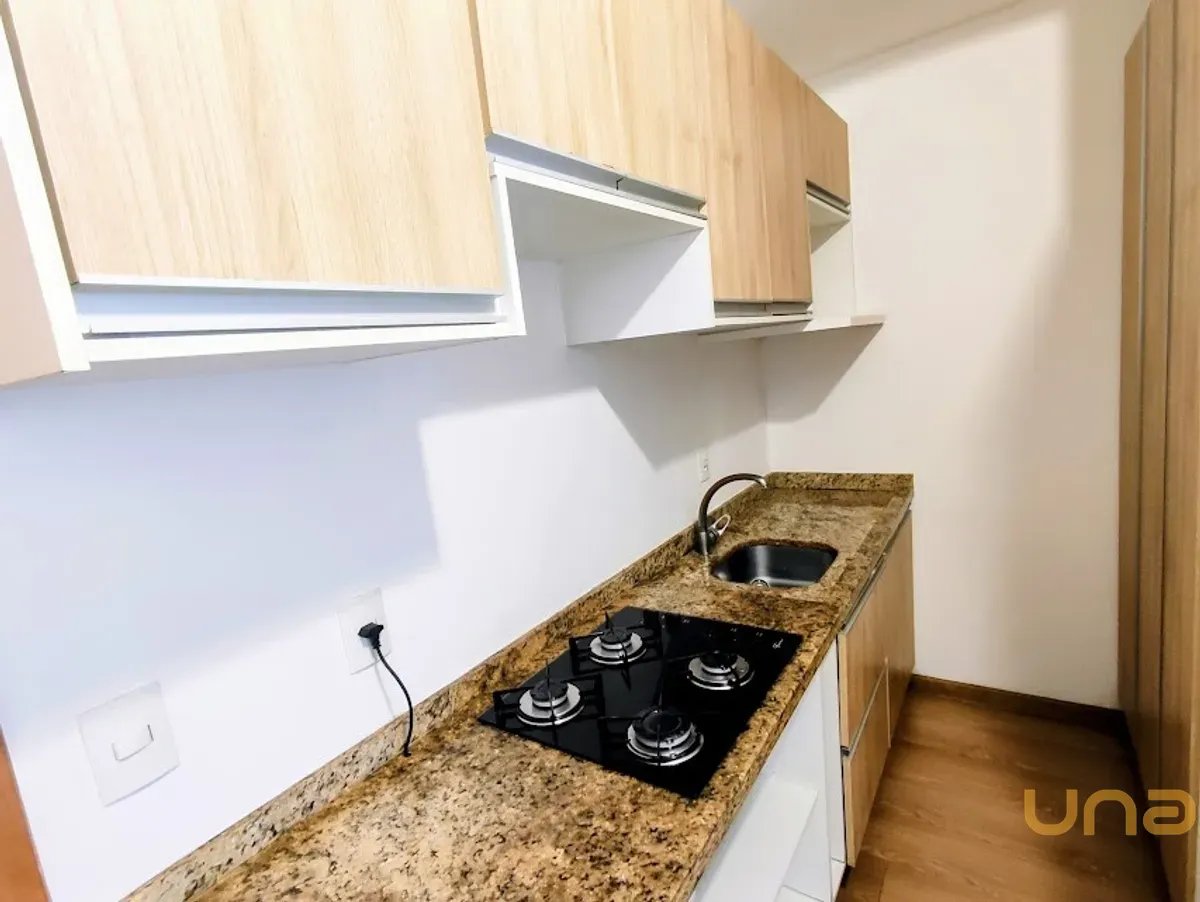 - Mobilia: pia com tampo em granito, fogão cooktop, rack-painel para TV, dormitório com armários, piso laminado, banheiro com box vidro, lavabo com tampo granito