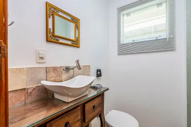 Com uma planta espaçosa e bem ventilada, esta residência oferece um ambiente acolhedor e moderno desde o momento em que você atravessa a porta principal. A sala de estar, iluminada naturalmente, é projetada para dois ambientes e possui uma elegante lareira, ideal para noites aconchegantes em família. Um lavabo complementa o ambiente social.