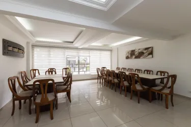 Salão de festas equipado para recepções sociais e celebrações dos moradores