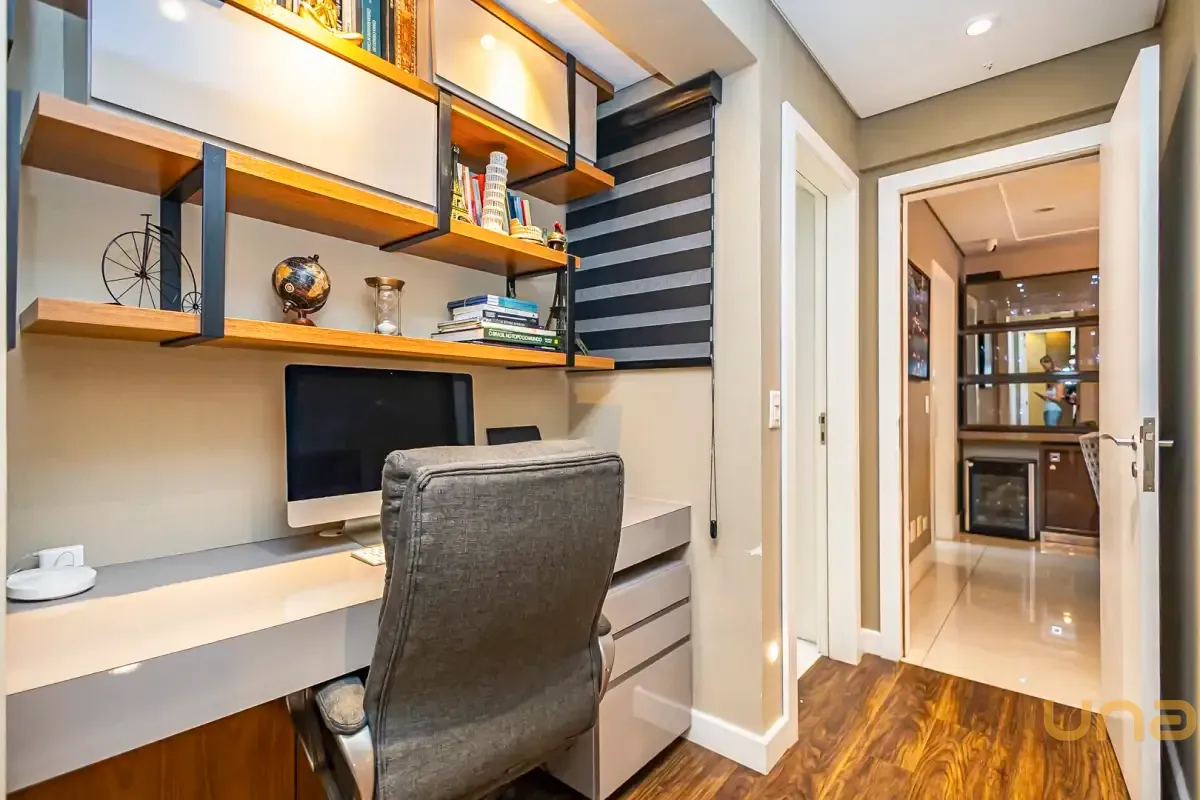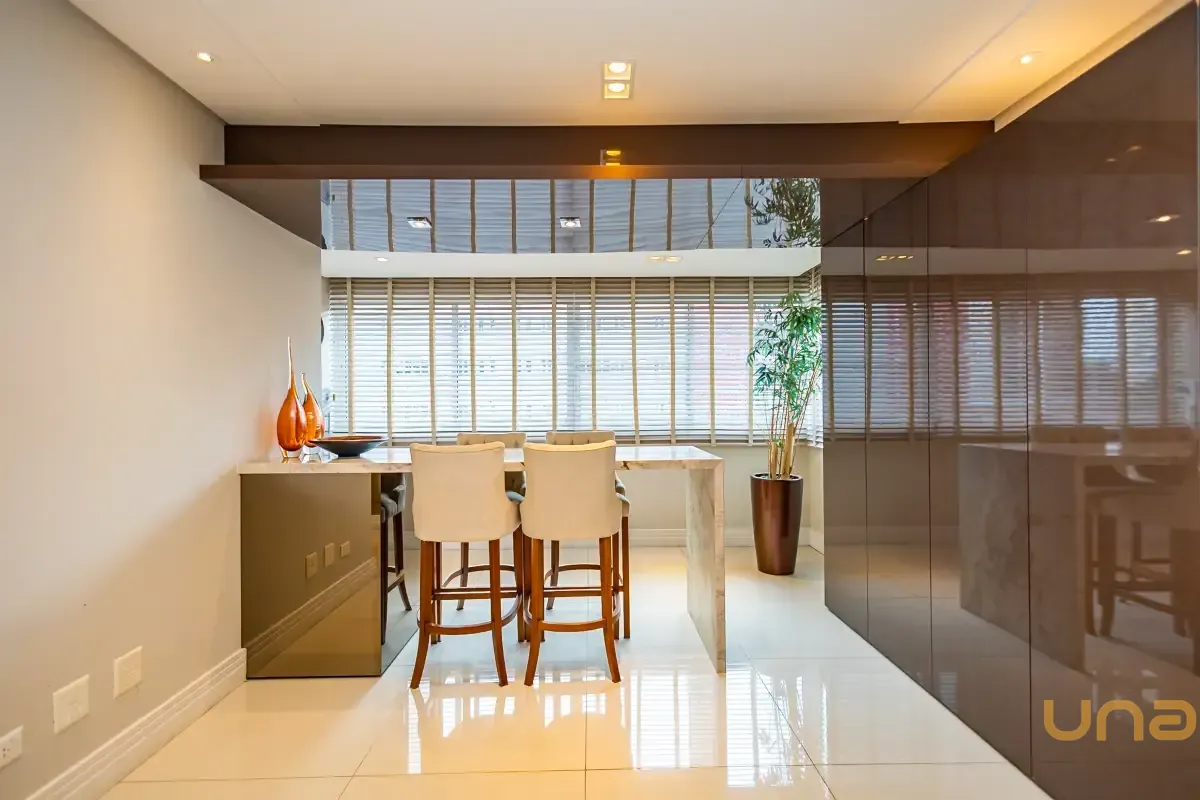 Alguns imóveis oferecem espaço. Outros oferecem uma forma melhor de viver. Este apartamento no Bigorrilho é um convite ao bem viver, onde cada detalhe foi pensado para transformar a rotina em experiência. A área social, com três ambientes integrados, revela amplitude e elegância, enquanto a churrasqueira a carvão cria o ponto de encontro perfeito para grandes momentos. O imóvel ainda conta com lavabo, cozinha planejada, despensa e home office. Na área íntima, três suítes, com destaque para a suíte master com closet, traduzem conforto e privacidade.