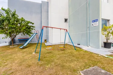 O condomínio oferece portaria 24 horas, playground e bicicletário.