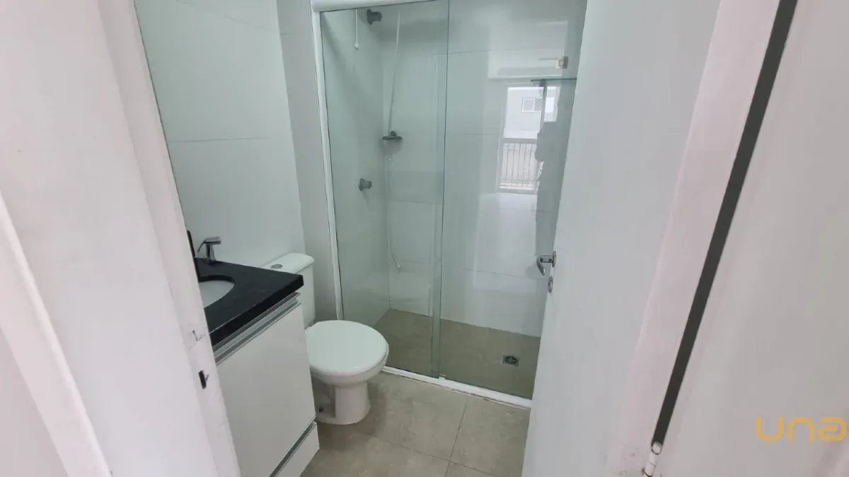 - 1 Banheiro social com box de vidro e armários