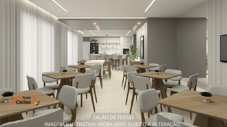 Apartamento com 2 quartos, sendo um deles suíte, sala com sacada, banheiro social, cozinha e lavanderia.