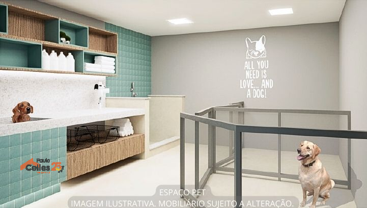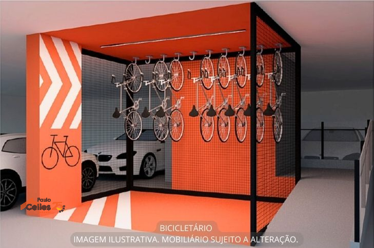 bicicletário, espaço pet, salões de festas e de jogos, academia, jardins, sauna, ofurô, brinquedoteca e coworking.