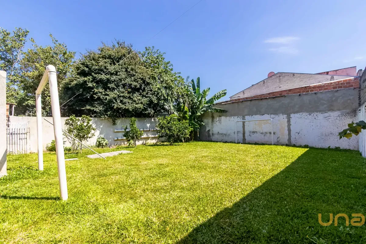 Nos fundos, há um amplo espaço com área gramada e pomar, ideal para momentos de lazer ao ar livre.