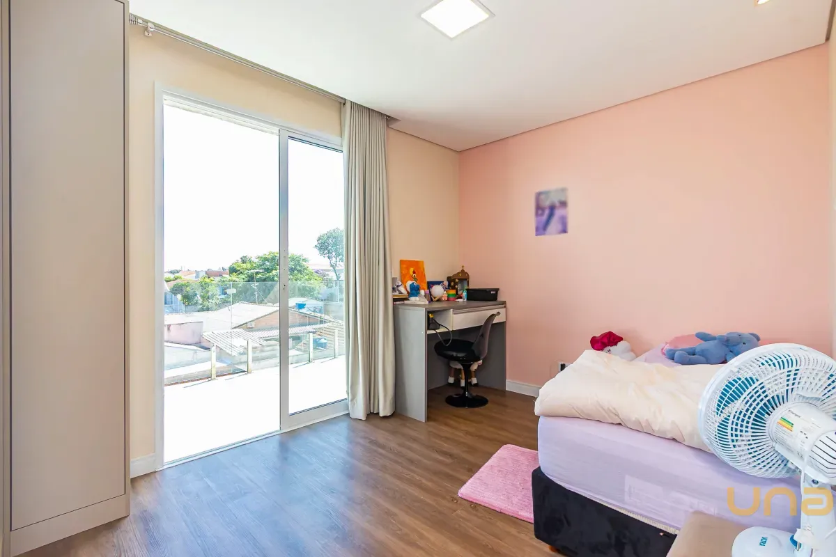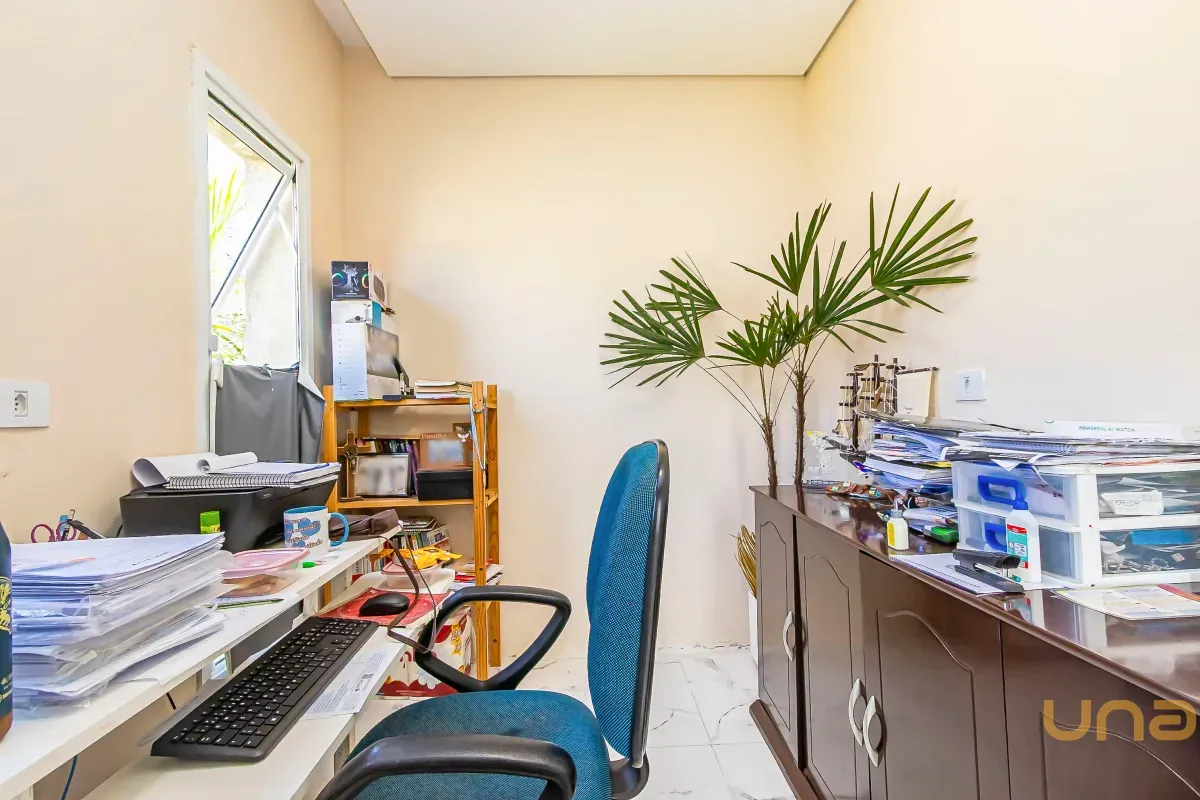 Casa triplex com excelente distribuição dos ambientes, composta por cinco quartos, sendo uma suíte espaçosa e um escritório que pode ser facilmente adaptado para dormitório. A suíte possui aproximadamente 18m² e conta com banheiro equipado com hidromassagem vertical. Há também uma sacada que interliga dois dos quartos. São 2 banheiros, ambos com hidromassagem vertical.