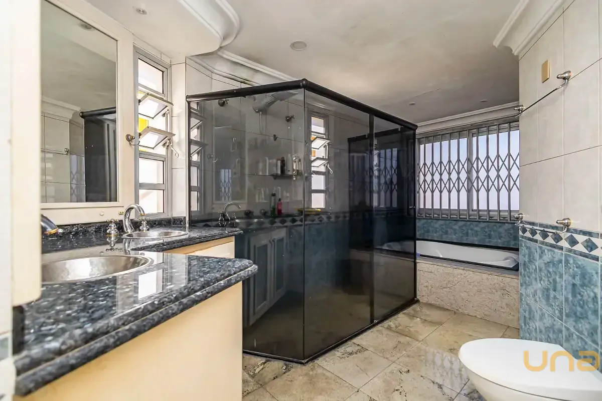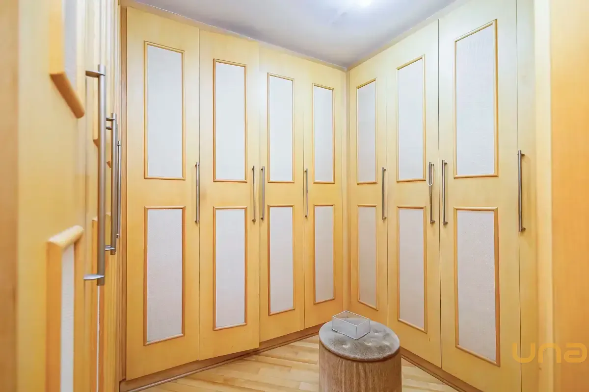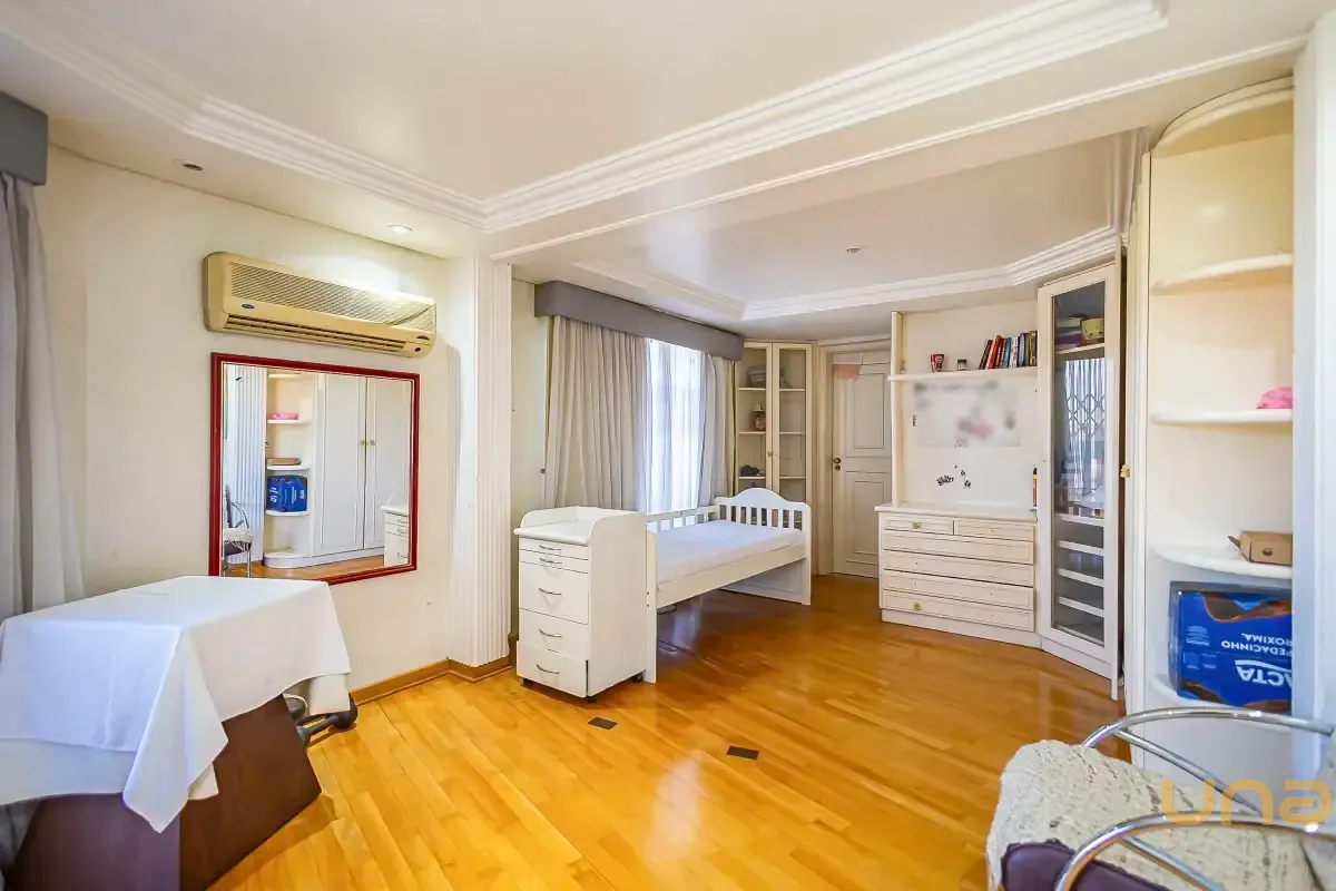 Na área íntima, oferece quatro suítes amplas e bem iluminadas, sendo uma delas com hidromassagem e closet, garantindo mais conforto e privacidade. Todas as suítes possuem armários planejados, otimizando o espaço e a organização.