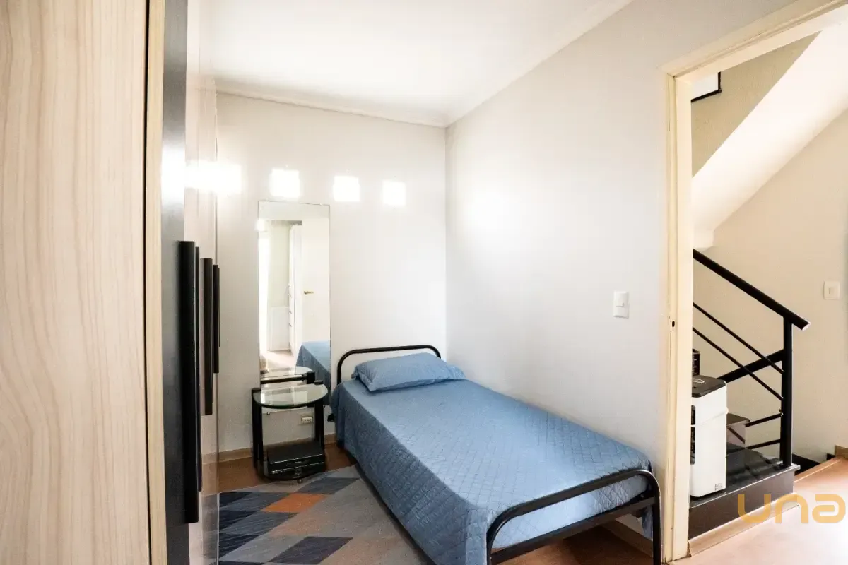 No segundo piso, encontram-se três quartos, sendo um deles uma suíte com espaço para closet, oferecendo mais privacidade e comodidade. Neste pavimento, há também um banheiro social que atende aos demais dormitórios.