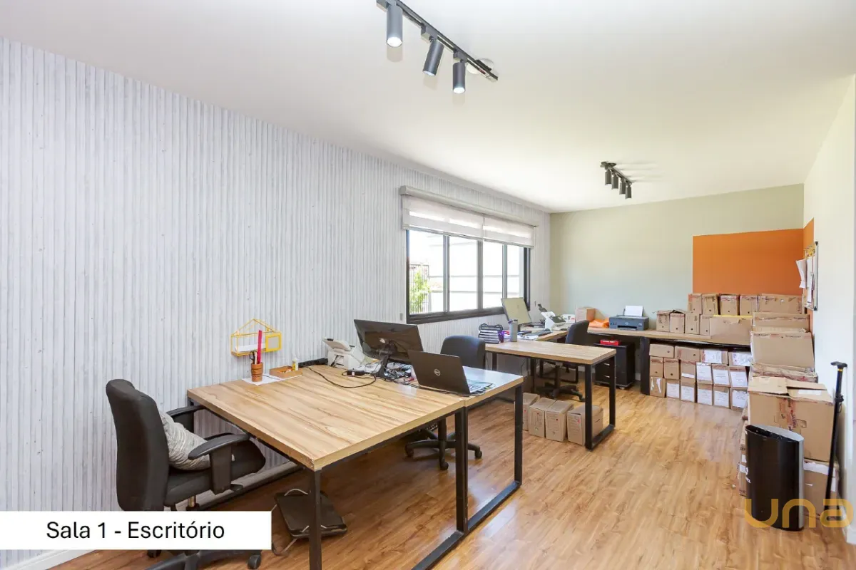 • Escritório independente com aproximadamente 50 m², acesso separado e banheiro completo, garantindo total privacidade em relação à área residencial