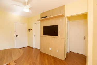 - 1sala com painel, TV, sofá cama e mesa com 02 cadeiras;