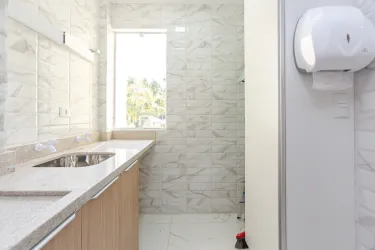 - 1 área de serviço com tanque e espaço para máquina de lavar roupas de espaço 85 x68 e armários
