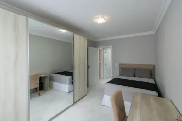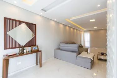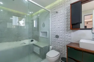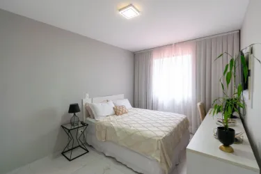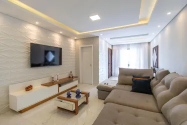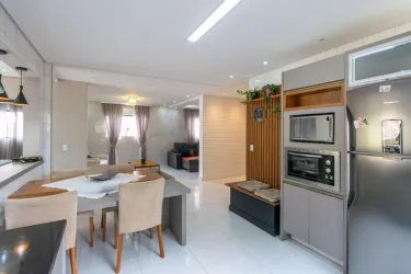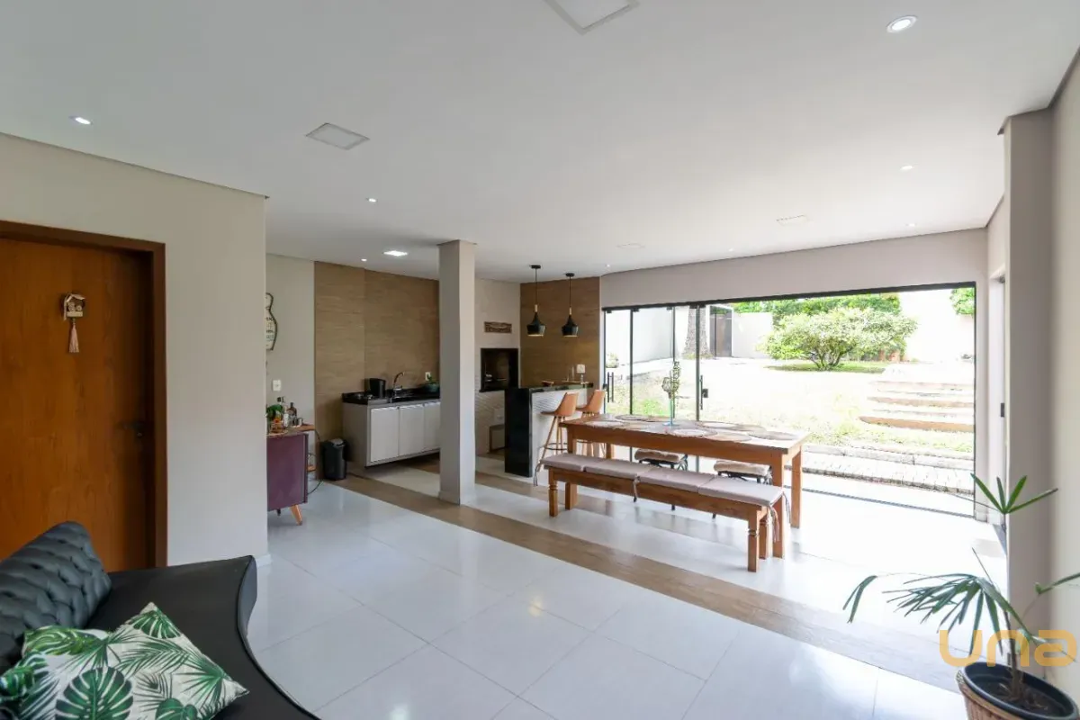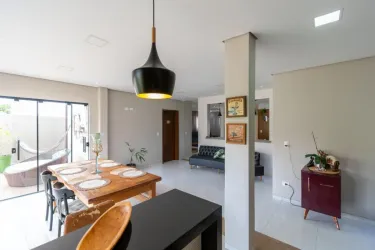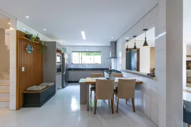 * Sala de estar e jantar integradas, proporcionando ambiente fluido e acolhedor para convivência e receber amigos.