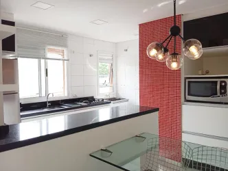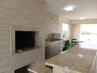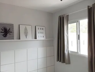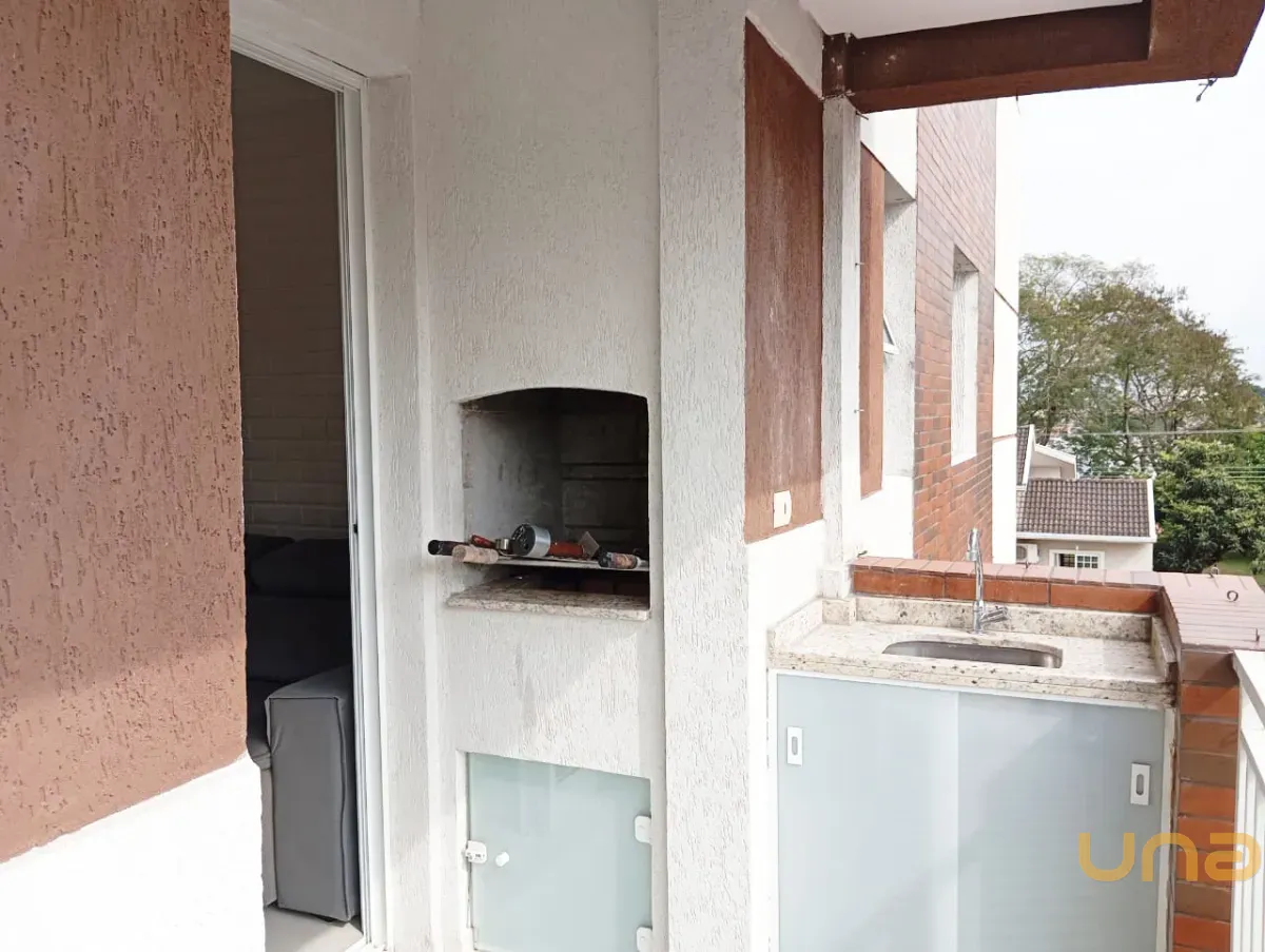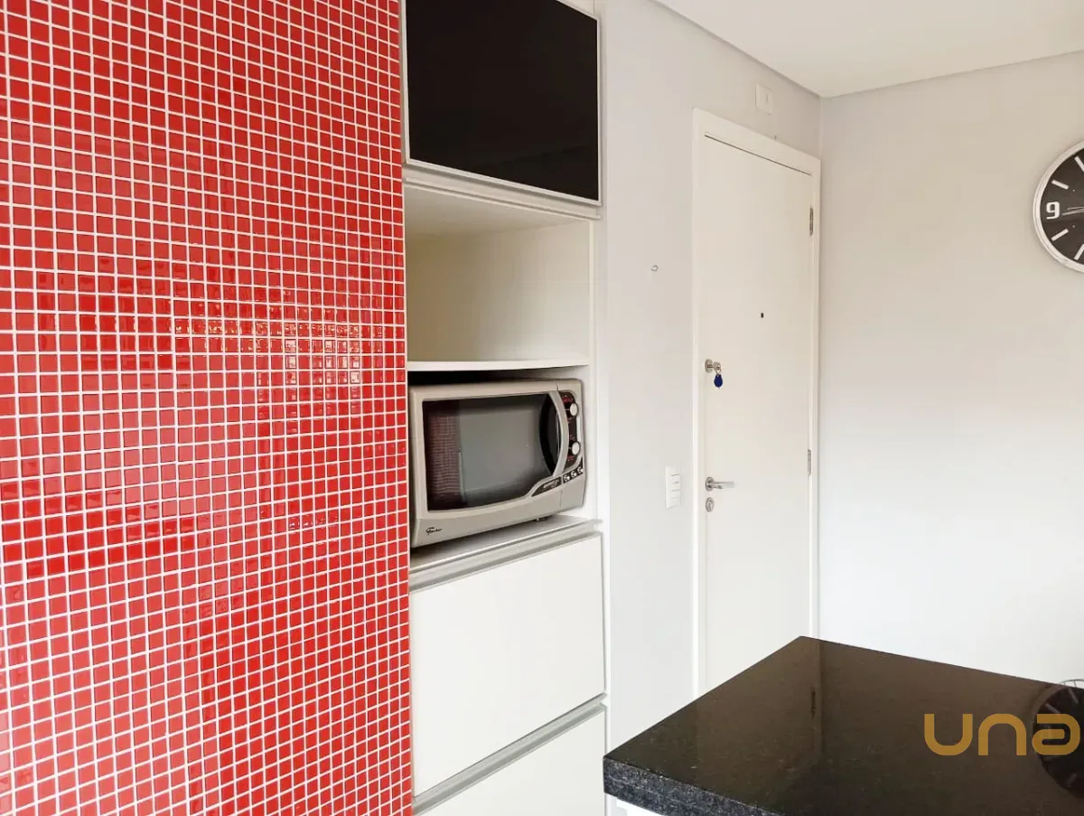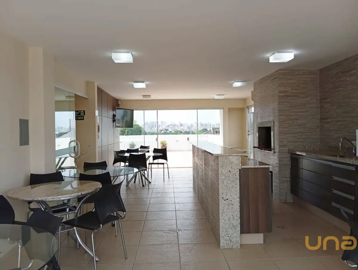sala de estar para 02 ambientes mesa, 04 cadeiras, sofá, cozinha com armários planejados de ótima qualidade, geladeira, ampla sacada com churrasqueira, 02 dormitórios, sendo 01 com armários, banheiro social com box, parede com pastilha e 01 vaga de estacionamento descoberta para uso de carro pequeno.
