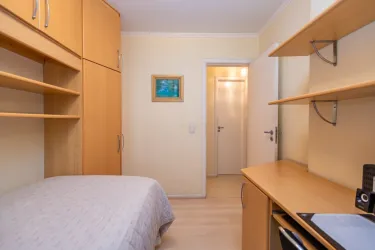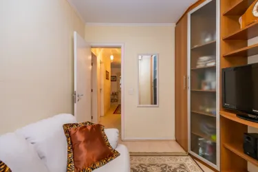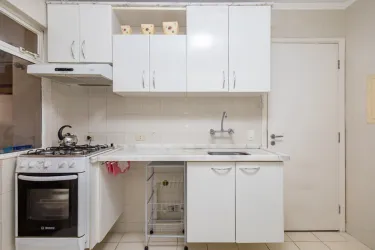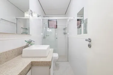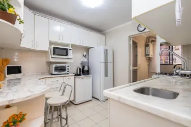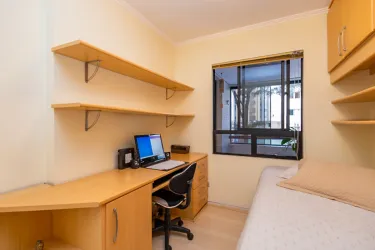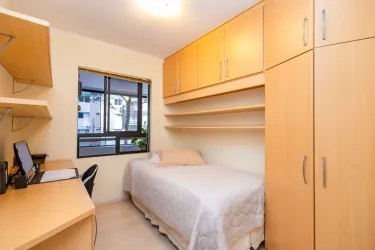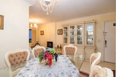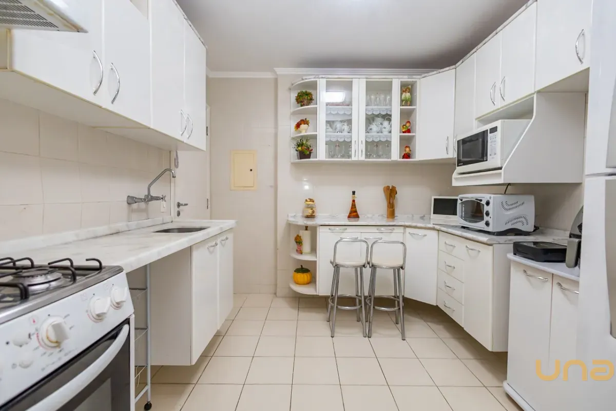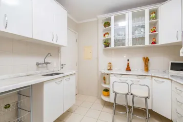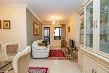 Apartamento face leste, semimobiliado, localizado no 1º andar, com 86 m² de área útil, contendo: sala para 02 ambientes com lareira e sacada, cozinha com armários, área de serviço com banheiro social, 03 dormitórios, sendo 01 suíte com armários e sacada, e banheiro social.