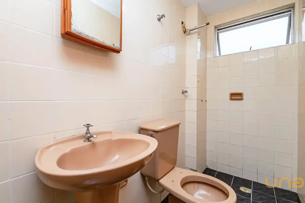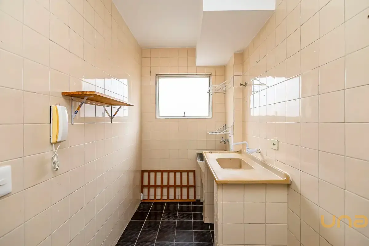 Detalhes: Apartamento com quarto amplo, sala de estar para 2 ambientes, banheiro e cozinha com pia, armário e área de serviço.