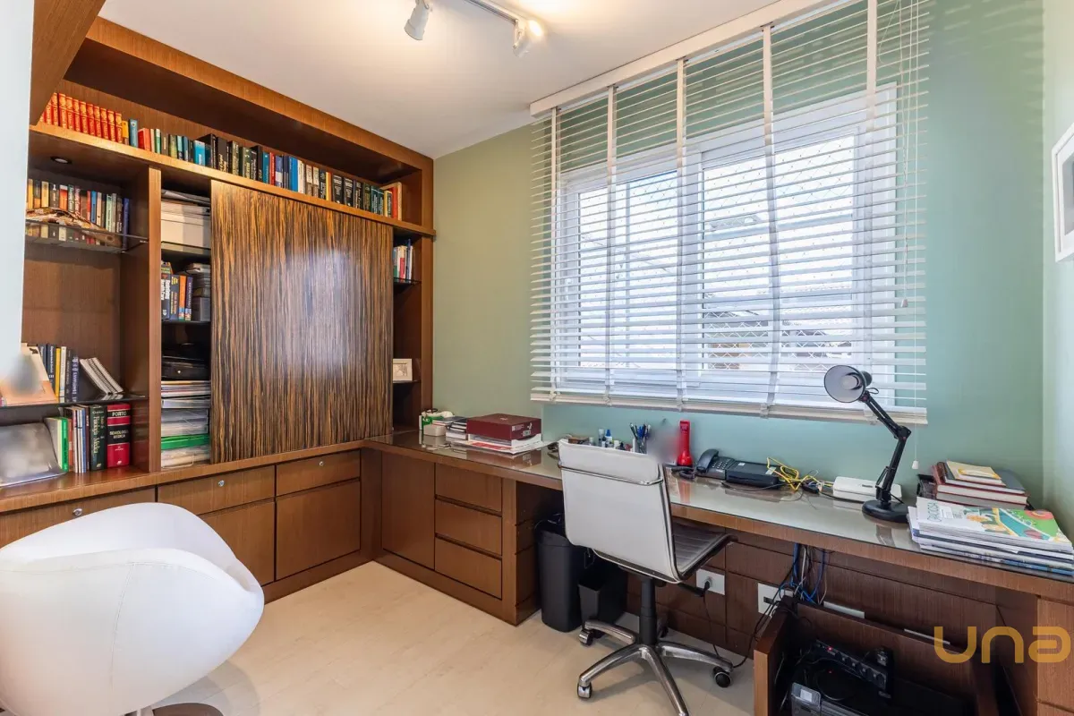 A infraestrutura do imóvel inclui alarme, aquecimento a gás, ar condicionado em todos os quartos e na sala de home theater, além de 4 vagas de garagem livres, sendo 2 cobertas e 2 descobertas.