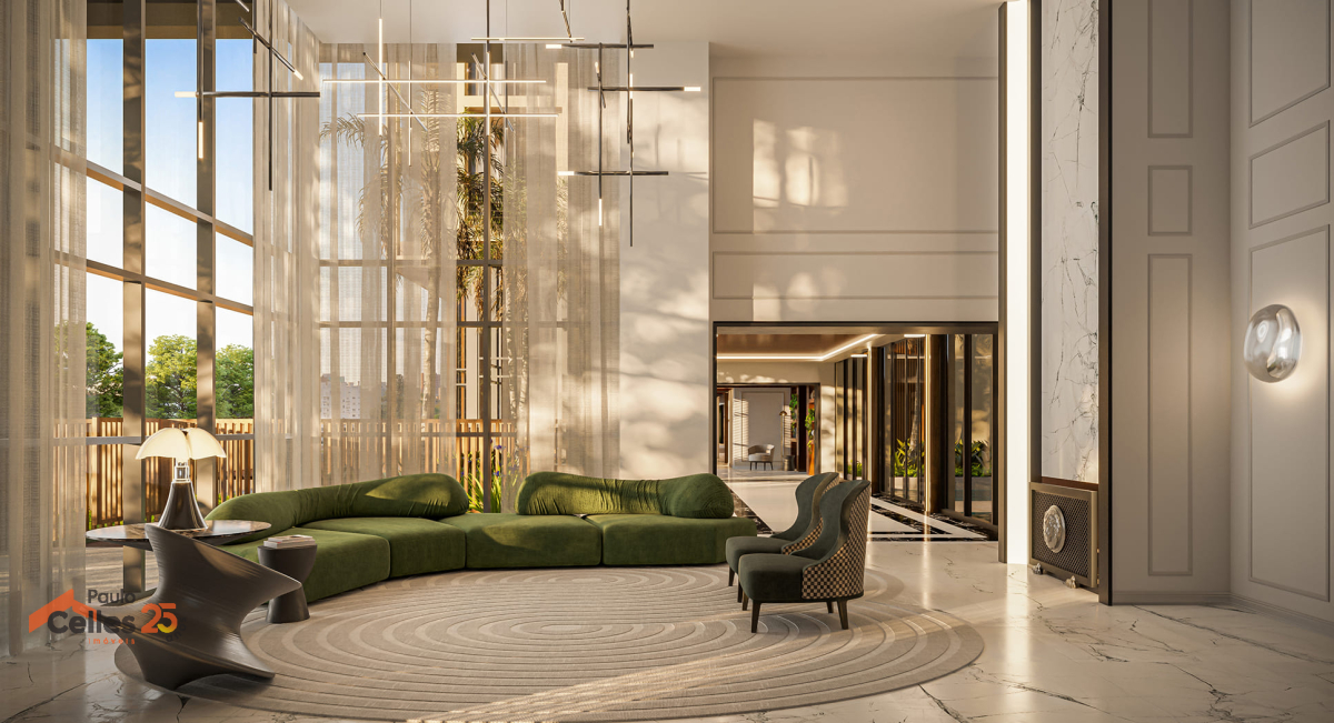 Já os espaços interiores surpreendem não apenas pela harmonia entre a exuberância clássica e o design moderno, mas também pelos detalhes luxuosos, como a padronagem tartan (típica