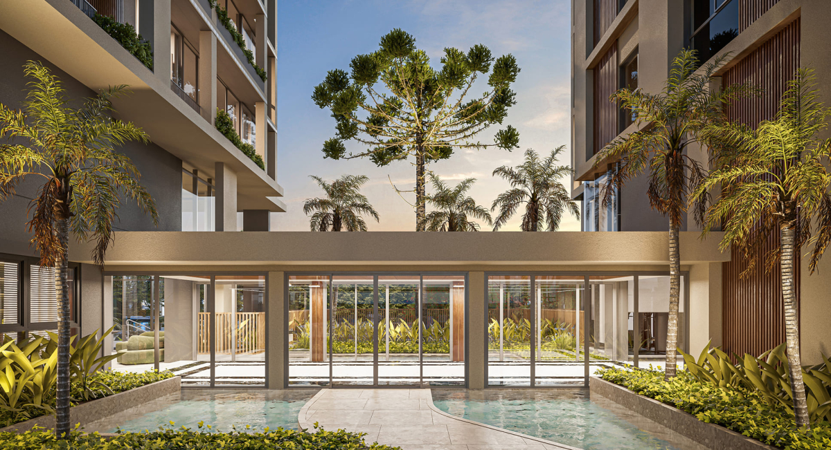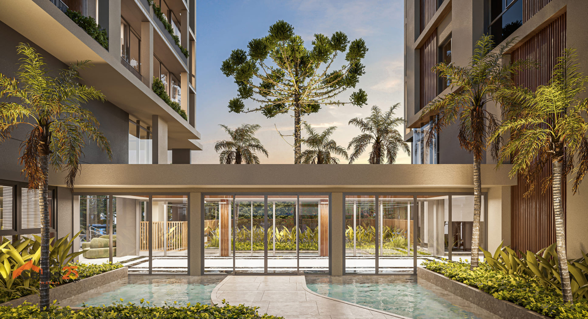 O paisagismo é um dos destaques do The Pineyards. Além dos pinheiros já existentes no terreno, o projeto trará espécies nativas selecionadas para manter os jardins encantadores o ano inteiro, num convite irresistível para mais momentos ao ar livre.