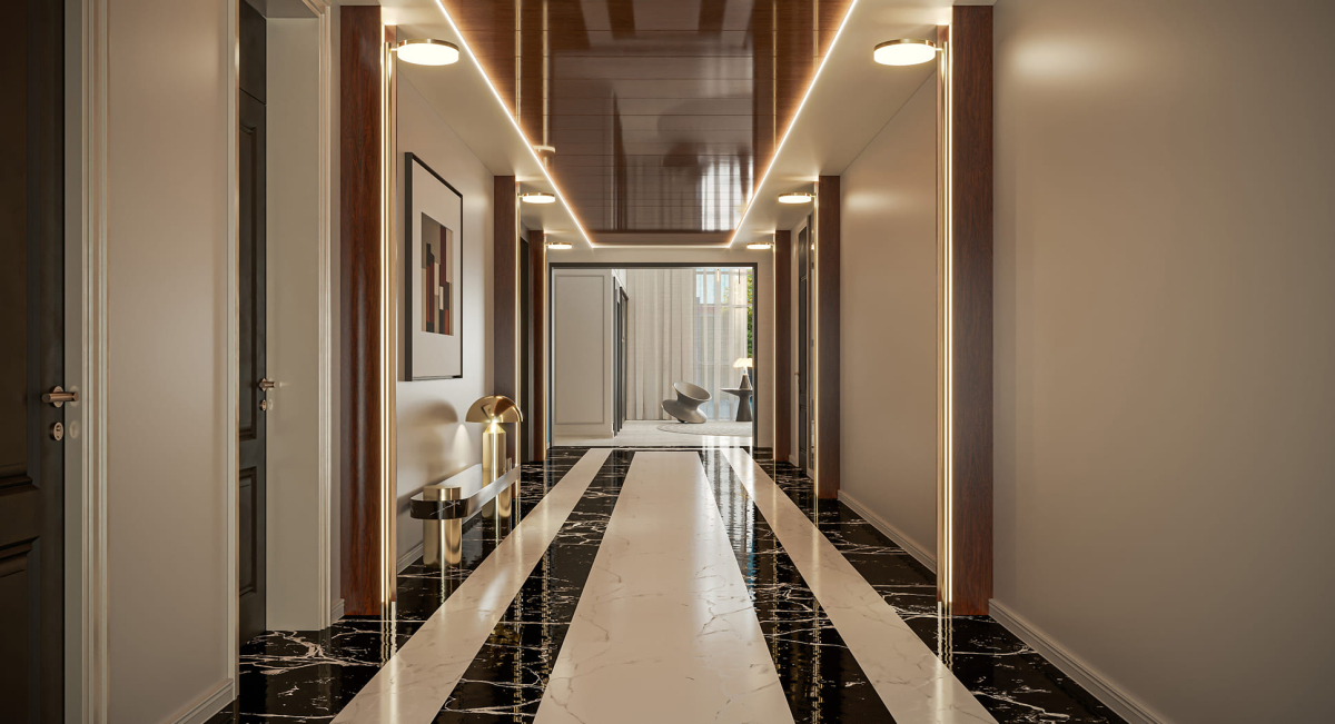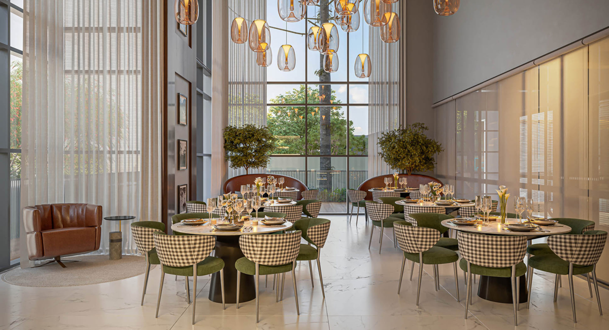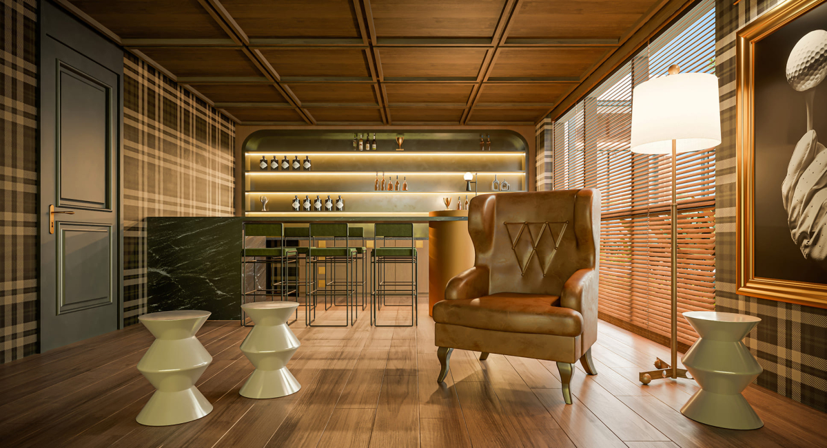Já os espaços interiores surpreendem não apenas pela harmonia entre a exuberância clássica e o design moderno, mas também pelos detalhes luxuosos, como a padronagem tartan (típica