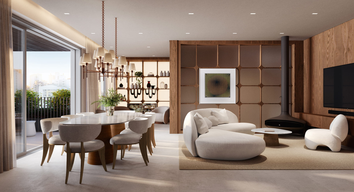 As linhas modernas da fachada fazem um contraponto inusitado com os detalhes clássicos do interior. Seu estilo atemporal garante uma permanente valorização, mesmo com o passar dos anos.