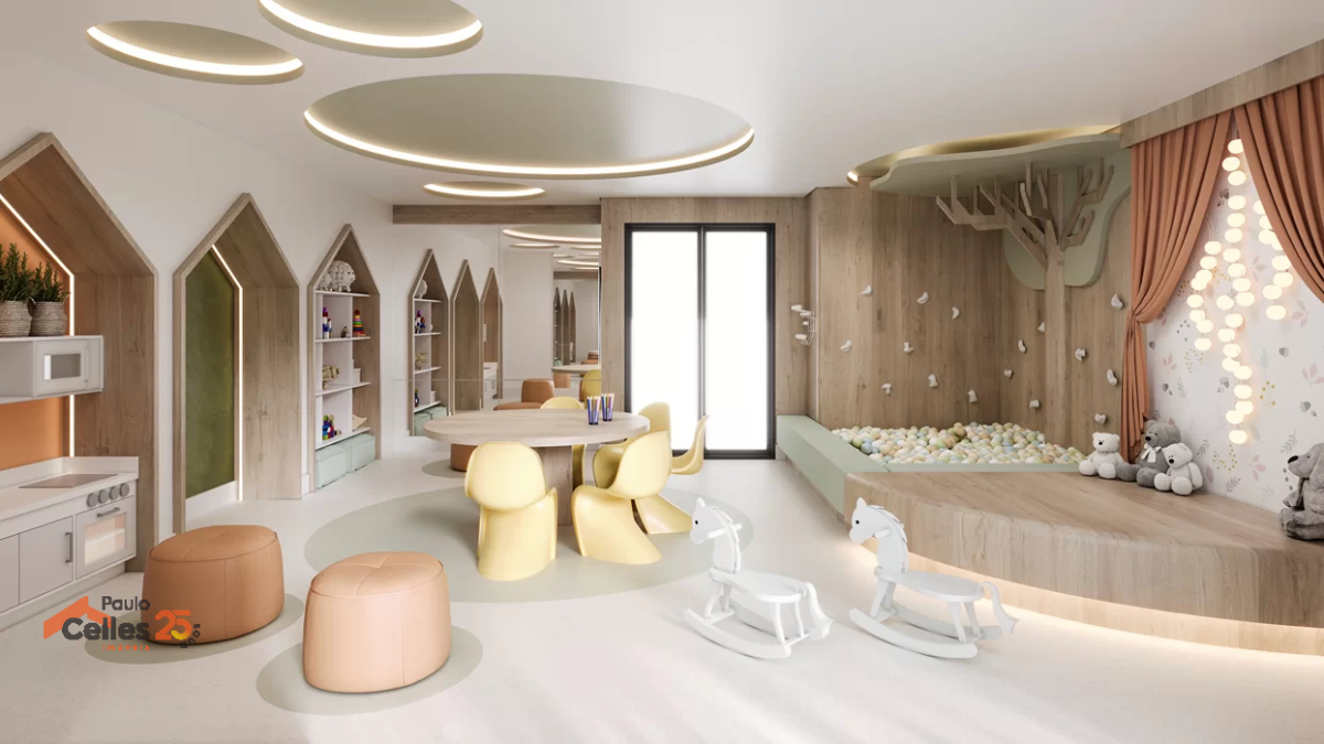 O Terrasse Infini oferece uma área de lazer completa, com playground, salão de jogos, salão gourmet, salão de festas, brinquedoteca, piscina adulto e infantil, quadra poliesportiva, horta, e espaço pet.