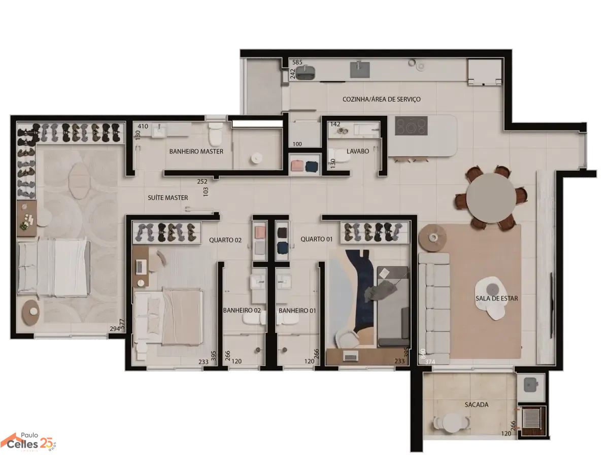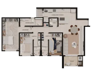 Com uma área generosa de 122,12m² privativos, este apartamento exclusivo oferece conforto e elegância, perfeito para quem busca uma experiência de vida única. São 03 suítes espaçosas, cada uma cuidadosamente projetada para garantir o máximo em conforto e privacidade.