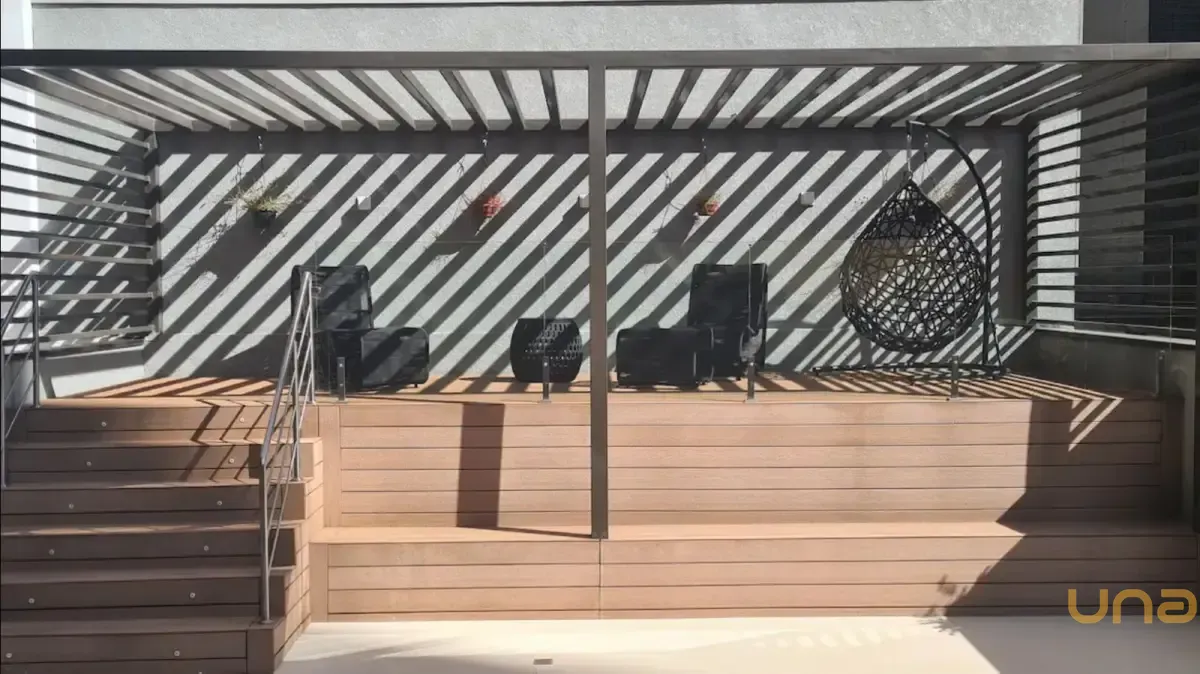 Sacada com fechamento em vidro, que pode ser utilizada também como home office