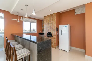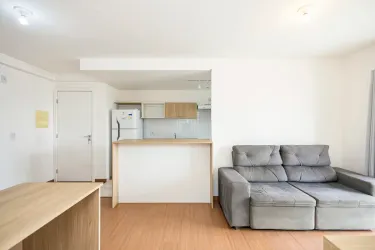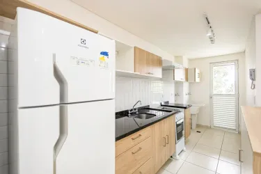 O apartamento destaca-se pelo excelente aproveitamento de espaço, contando com uma sala de estar acolhedora e dormitórios já equipados com armários sob medida. A área interna é complementada por uma cozinha funcional, que inclui armários, geladeira e fogão, integrada à área de serviço para maior praticidade, o banheiro possui acabamento moderno com box em vidro, espelho e armário.