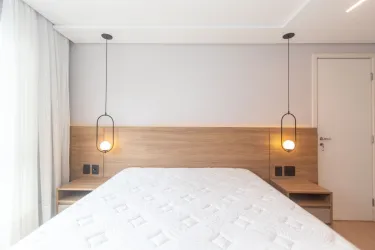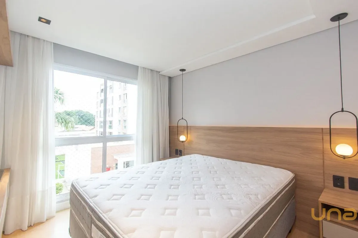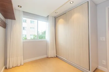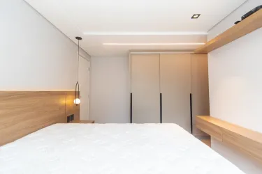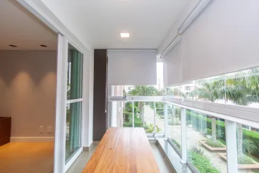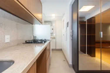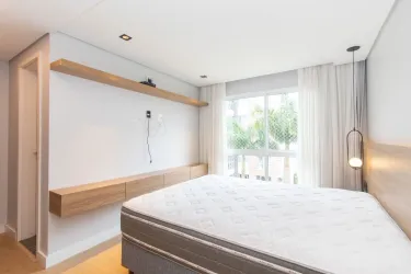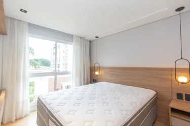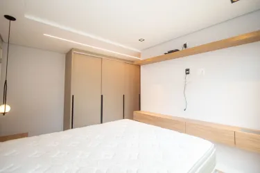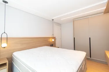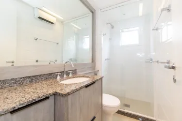 Imóvel equipado com piso laminado em madeira; esquadrias em alumínio; cortinas de excelente qualidade e aquecimento de água à gás.