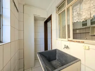 Apartamento de fundos, bem ensolarado e ventilado, contendo 2 quartos com armários embutidos, sala para 2 ambientes, cozinha com armários, banheiro social com armário, box em vidro temperado e espelho, área de serviço com armário e garagem para um carro de porte pequeno.