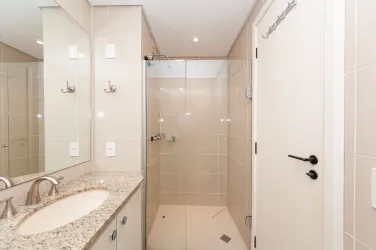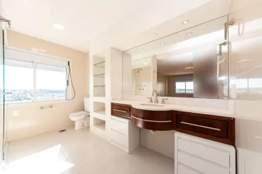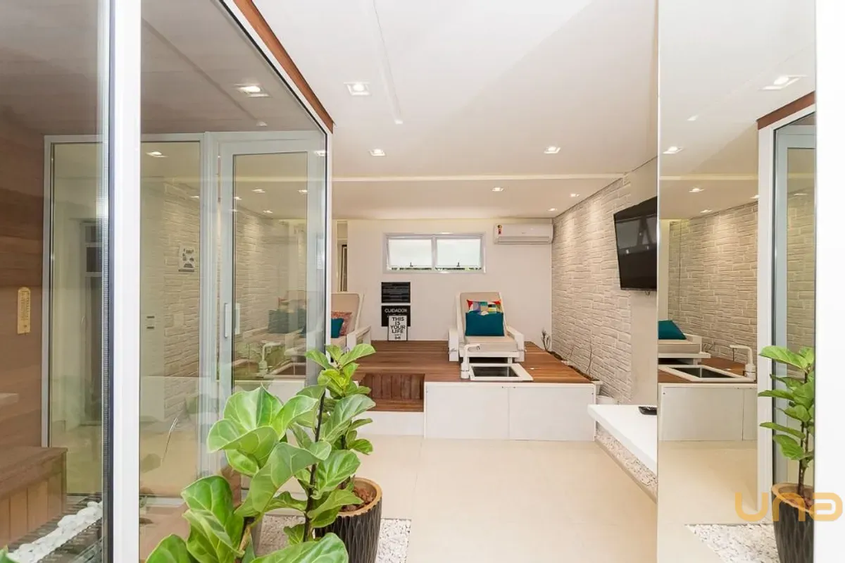 Condomínio Club, Ecoville, Apartamento com 110,57m² privativos, 2 dormitórios, sendo 1 suíte com armários, sala com lareira, 2 vagas de garagem, Rua Grã Nicco, 295.