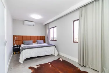 Acabamentos: Piso em cimento queimado, trazendo sofisticação e estilo contemporâneo.