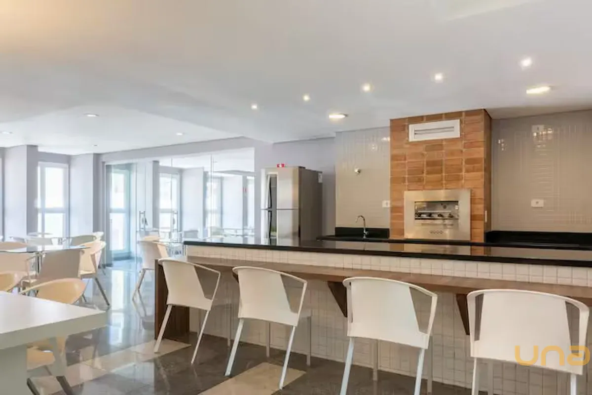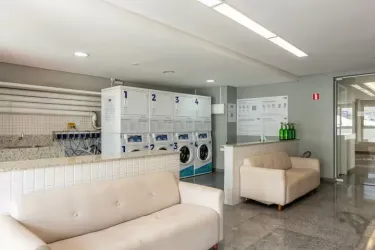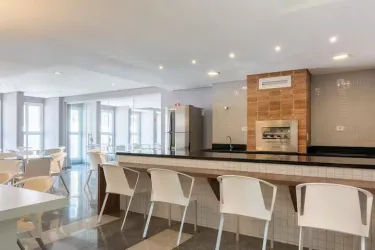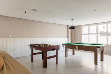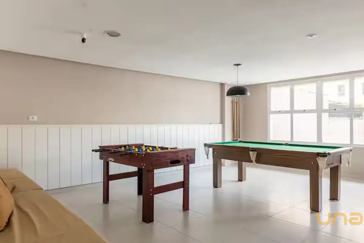 Condomínio completo, oferece portaria 24h, elevador, lavanderia, mercado, sala de jogos, terraço com churrasqueira, salão de festas.
