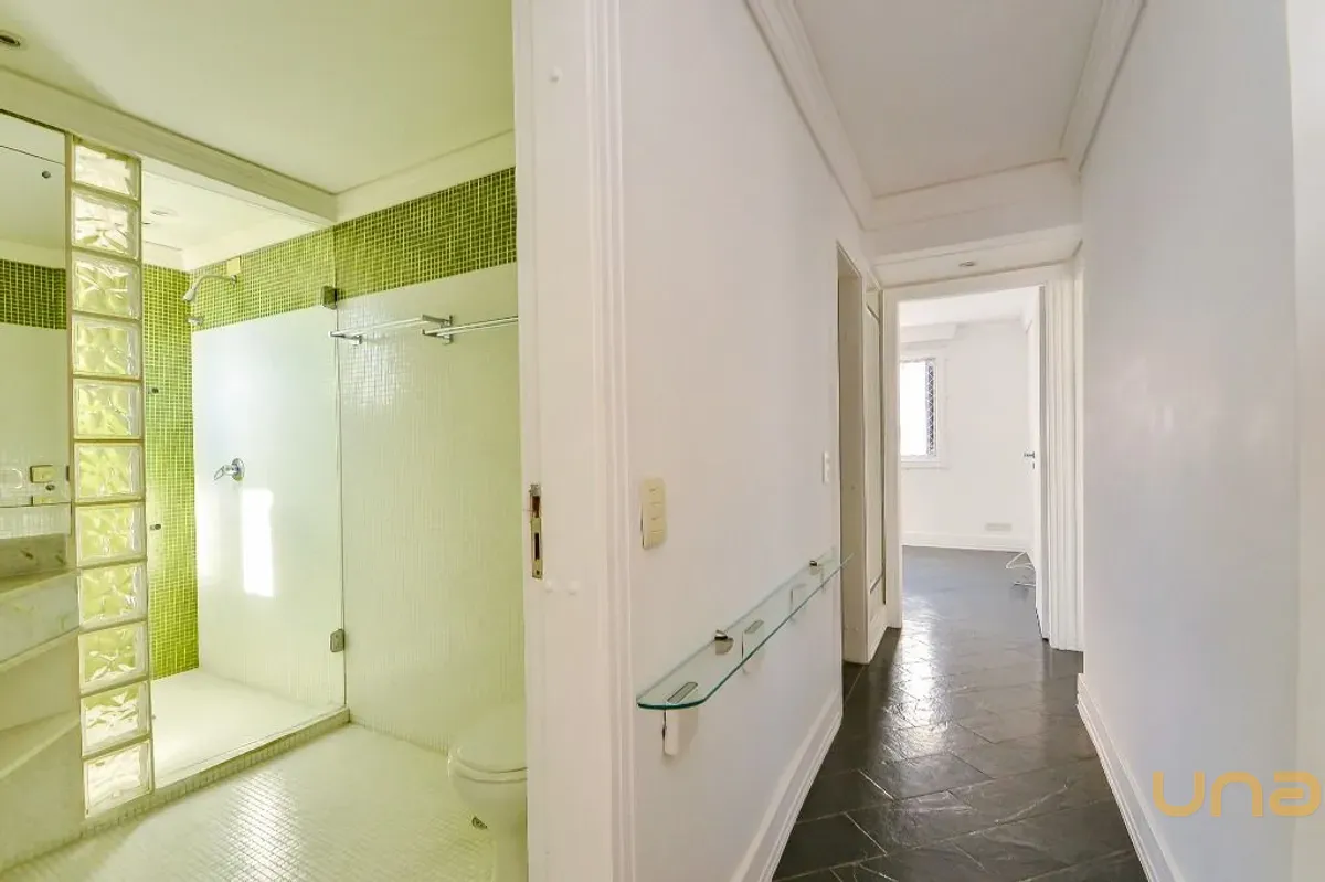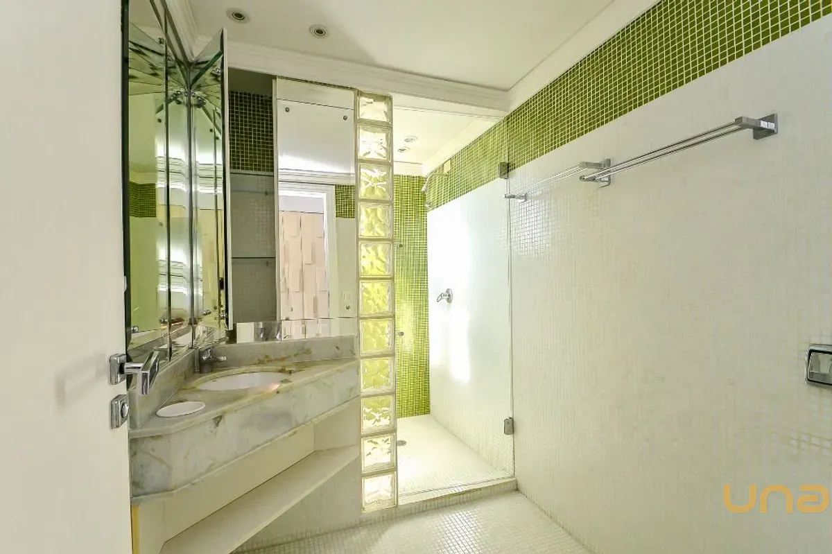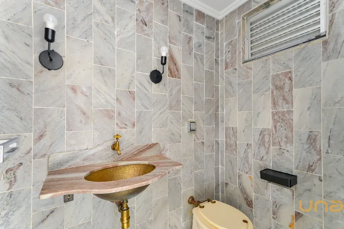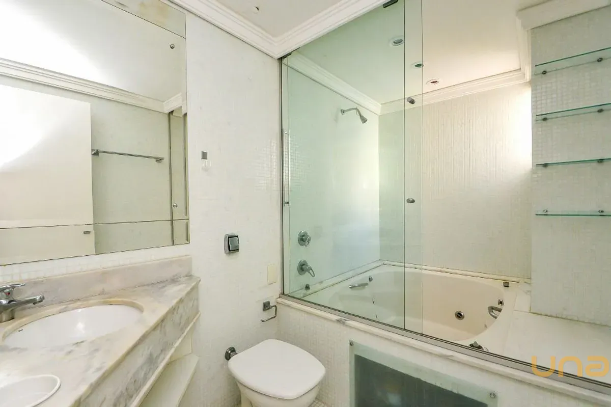 O imóvel conta com 3 quartos, sendo 1 adaptado para escritório, além de closet amplo e bem distribuído. São 2 banheiros completos, sendo 1 com hidromassagem, ambos com box em vidro temperado e louças novas, além de lavabo.