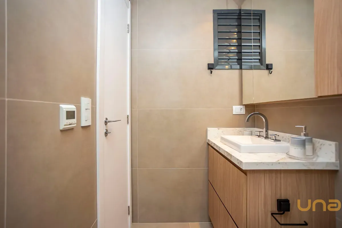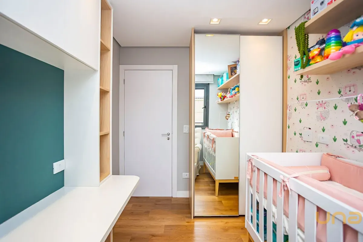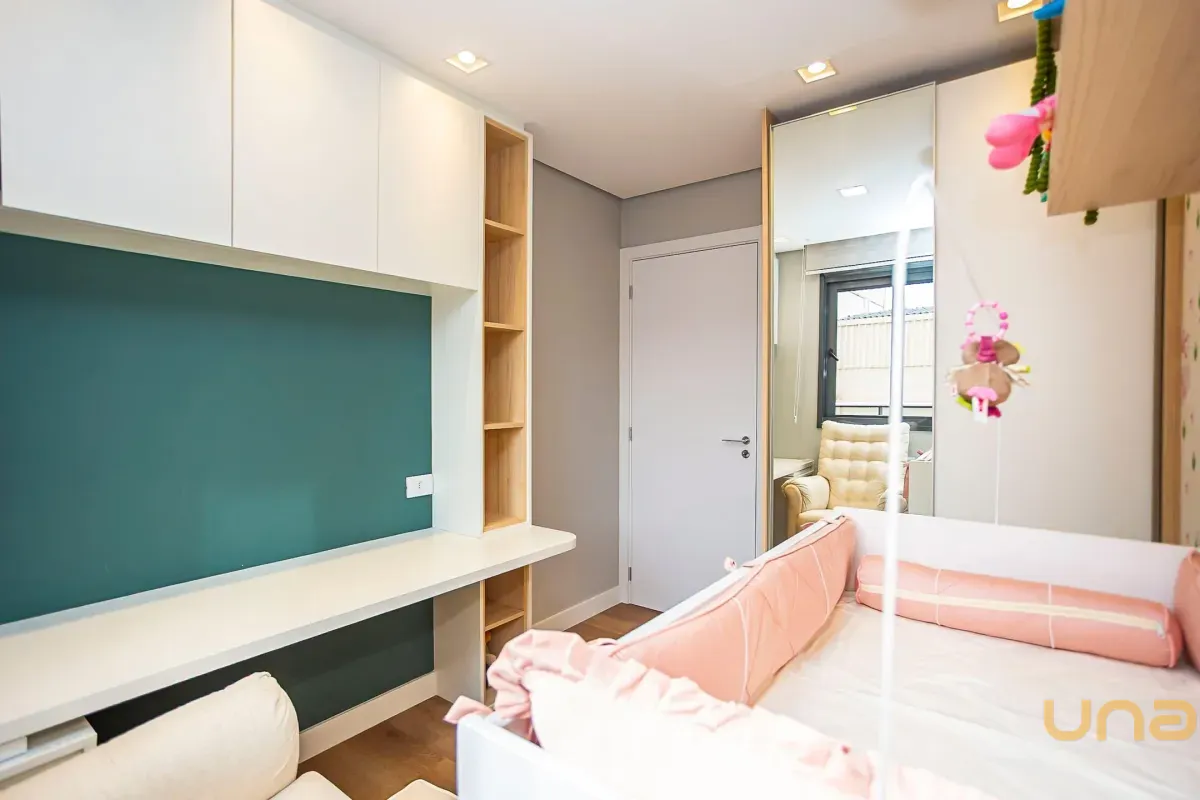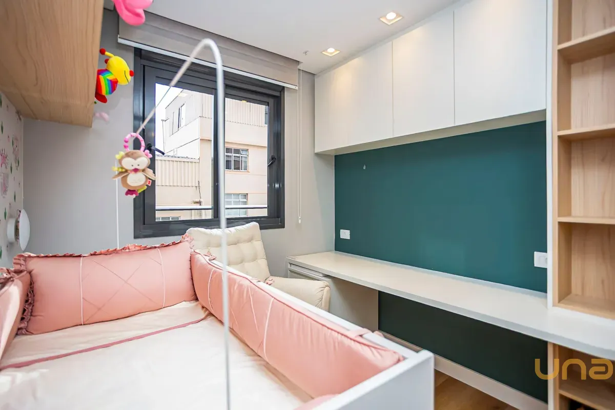 - 02 dormitórios sendo 01 suíte com close, cama de casal, painel para televisão planejado e cortinas sob medida;