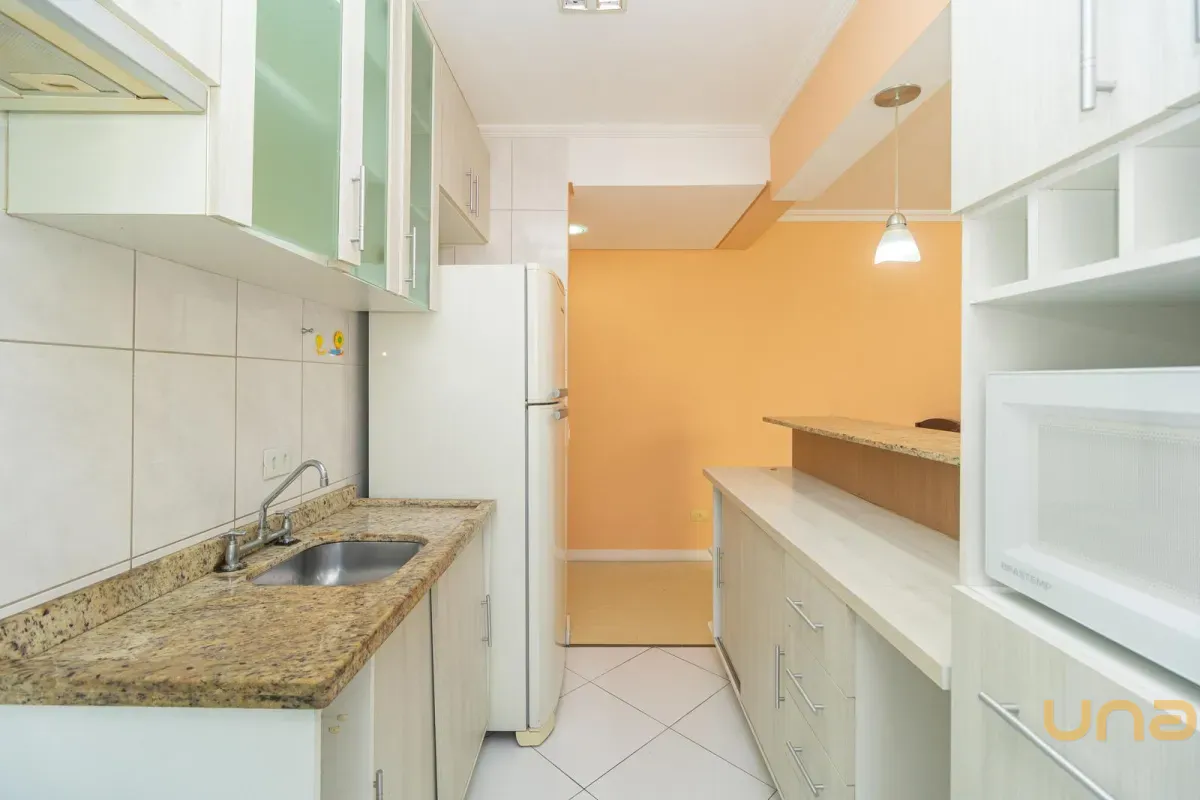O imóvel dispõe de sala ampla para dois ambientes, já equipada com mesa de jantar para 04 lugares, sacada com churrasqueira, cozinha americana com bancada em granito, área de serviço, banheiro social com box em blindex, 01 dormitório com piso laminado e 01 suíte.