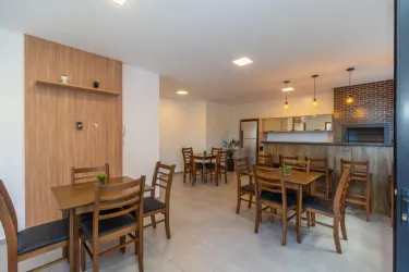 O imóvel conta com sala para dois ambientes, com acesso à sacada com churrasqueira, além de área de serviço integrada com tanque.