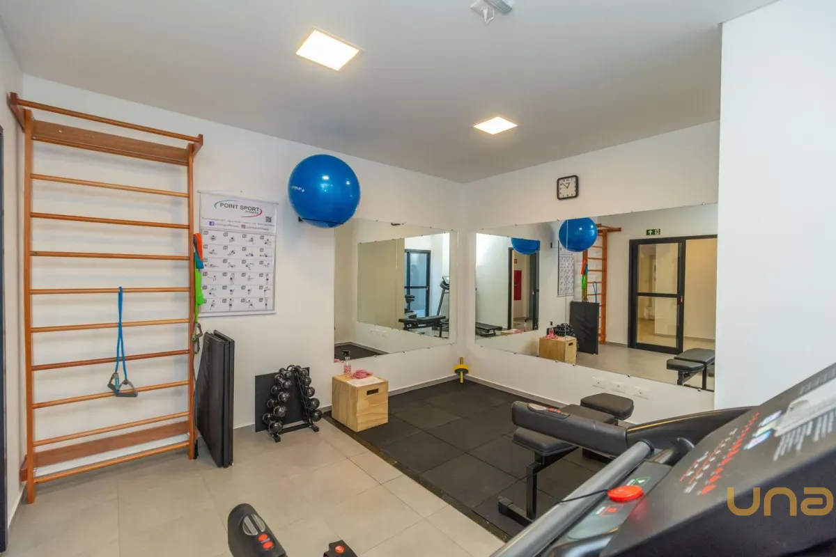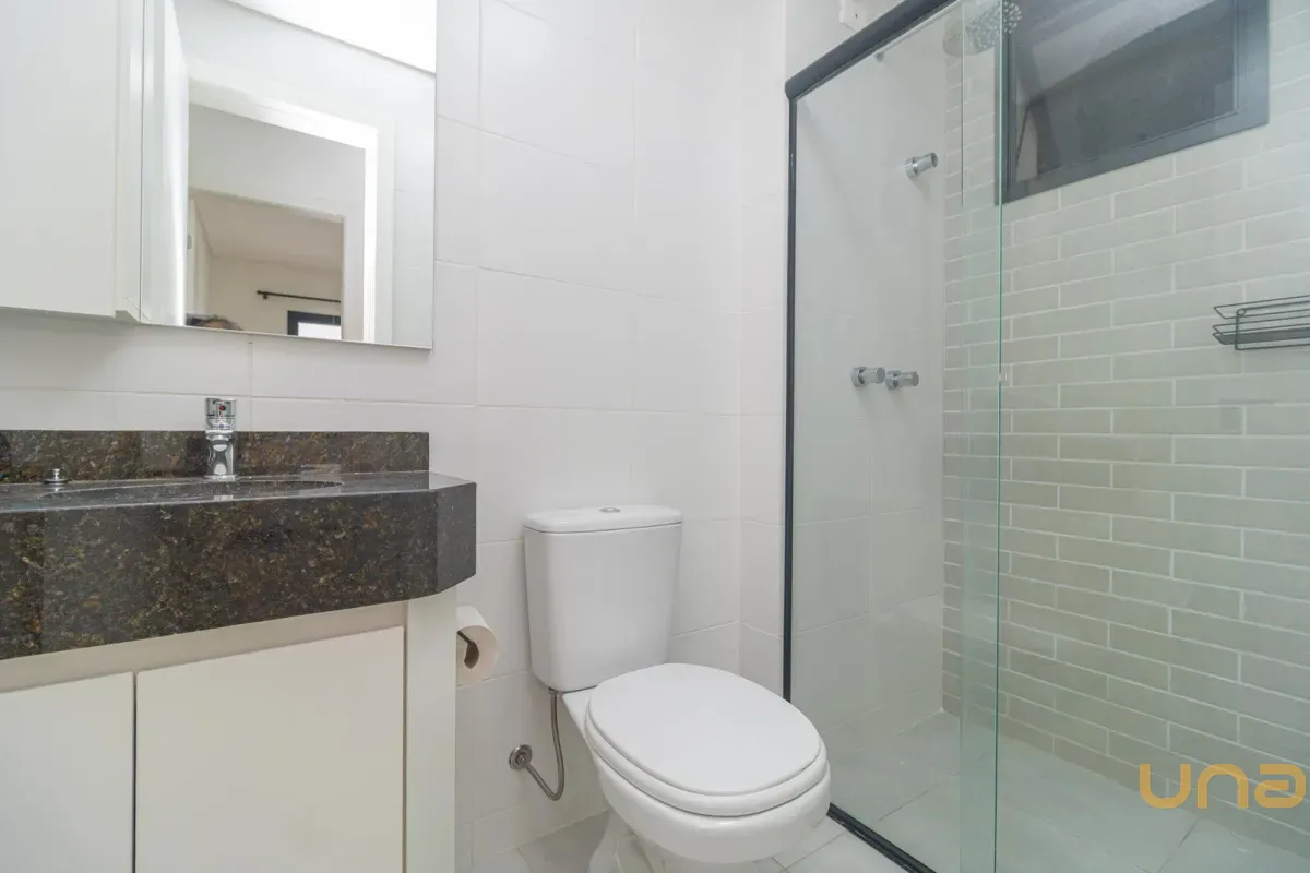Dispõe de banheiro com armário, espelho e box em vidro, além de 2 quartos bem distribuídos.