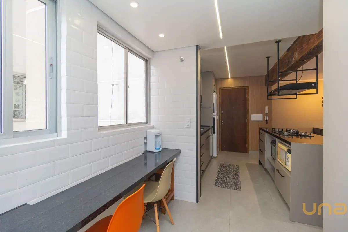 Excelente apartamento disponível para locação no bairro Bigorrilho, totalmente reformado, com ambientes modernos, bem distribuídos e mobiliados, ideal para quem busca conforto e praticidade no dia a dia.