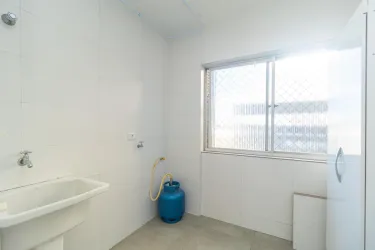 - Lavanderia com tanque e espaço para máquina de lavar.