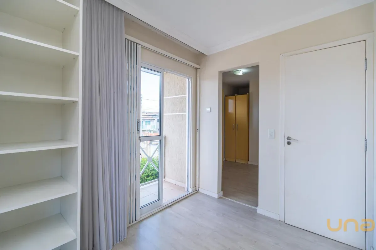 Uma com armários planejados, bancada de estudos, closet e sacada