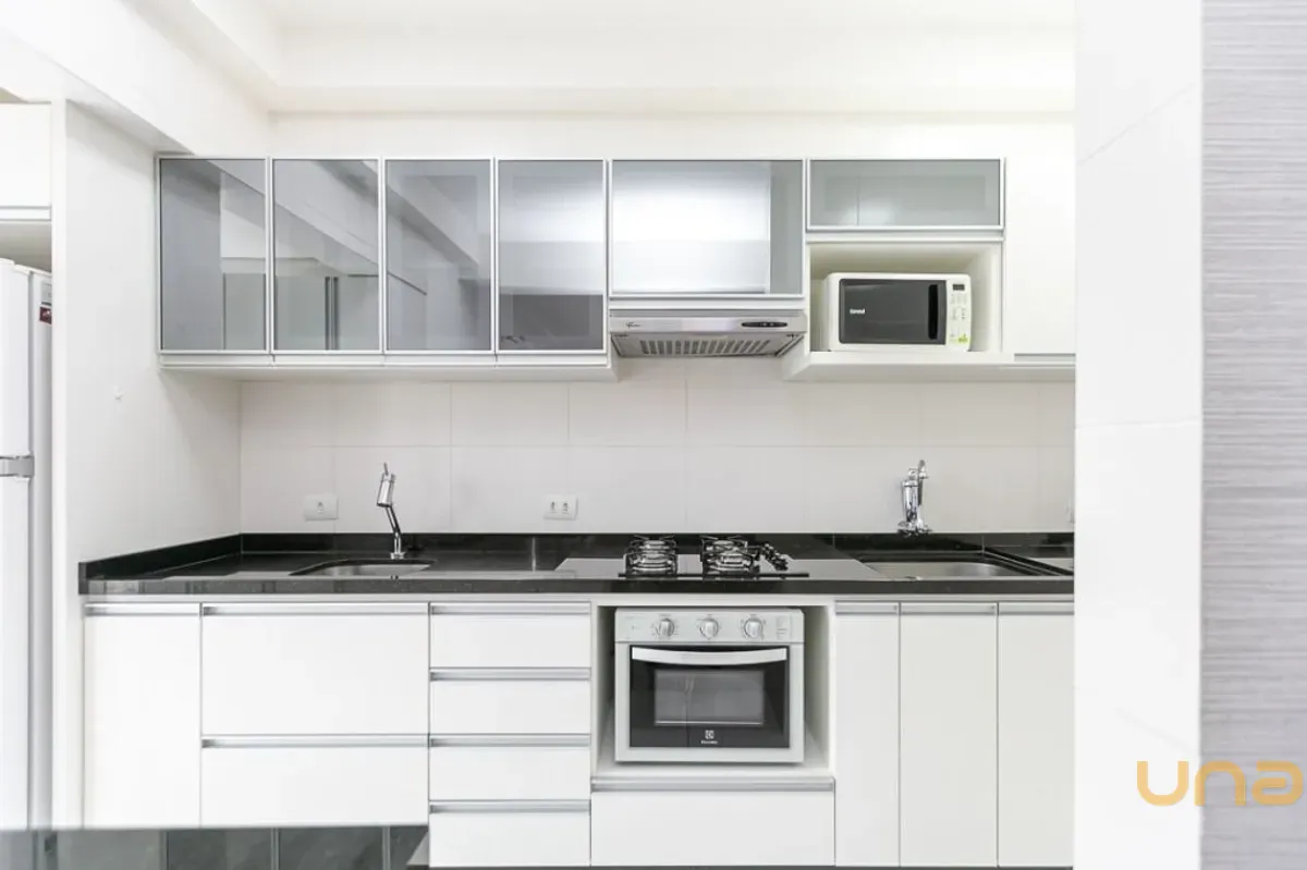 - Cozinha com armários planejados, fogão, geladeira e micro-ondas;