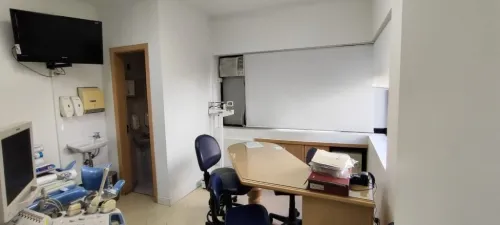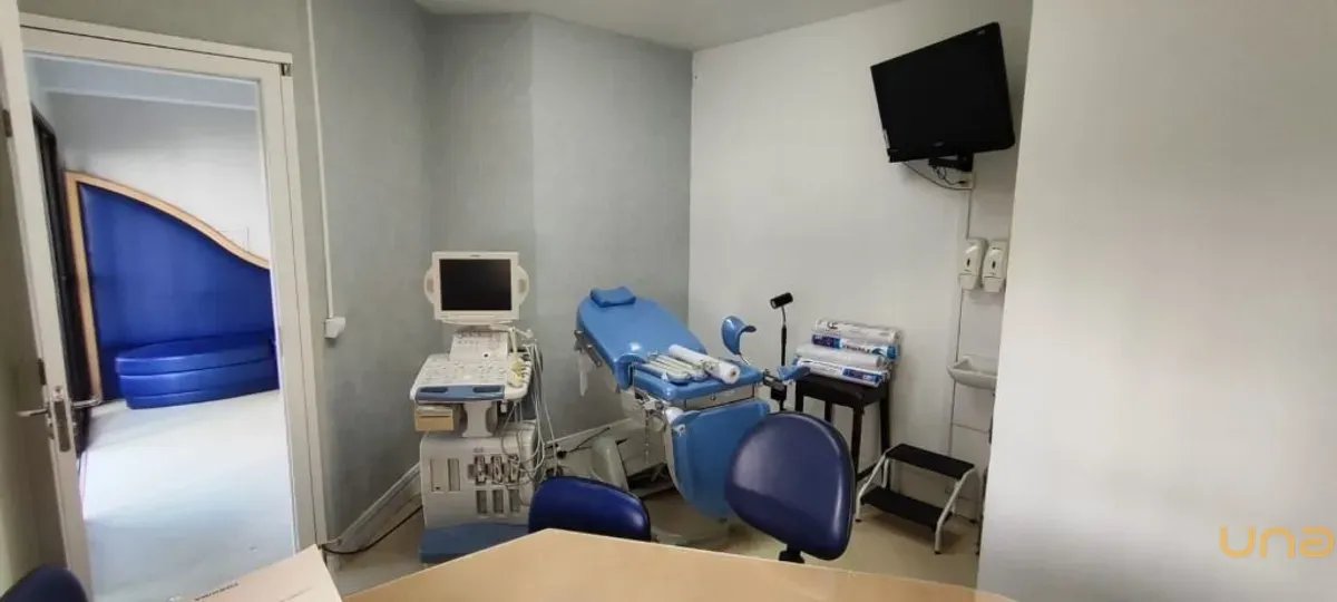 A sala dispõe de aparelhos para a área médica, além de possuir uma charmosa sacada.