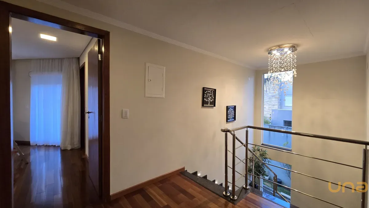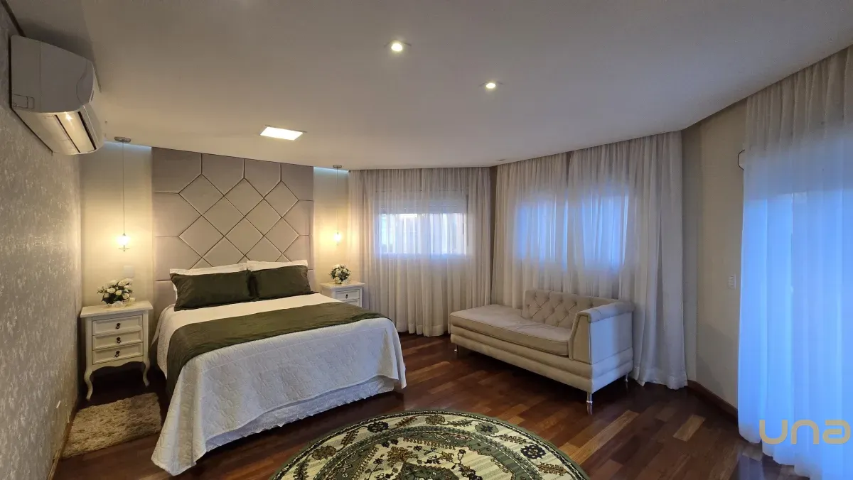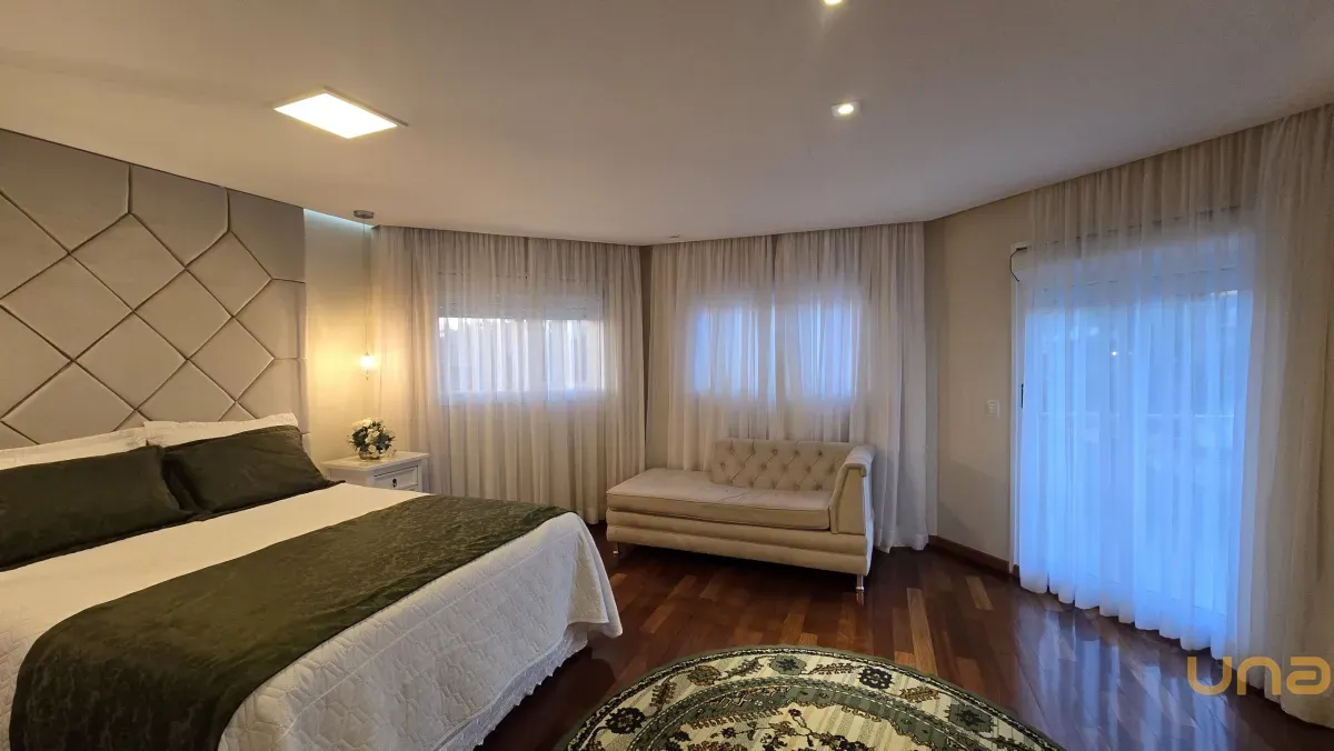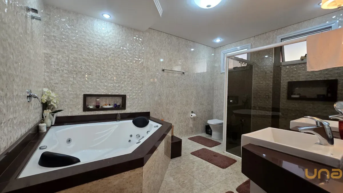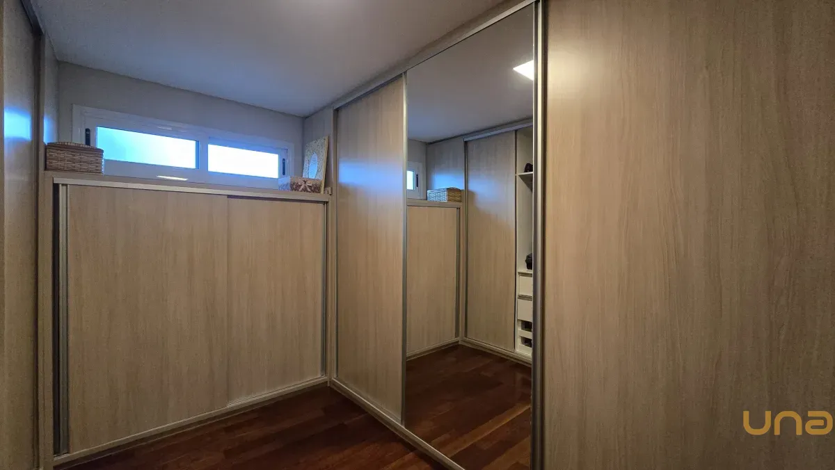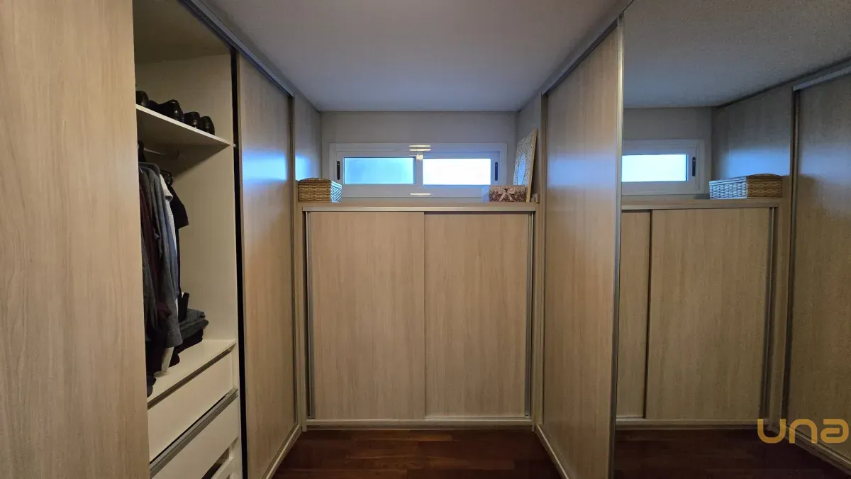4 dormitórios, sendo 2 suítes, incluindo uma suíte master com banheira de hidromassagem, closet e armários planejados no piso superior.