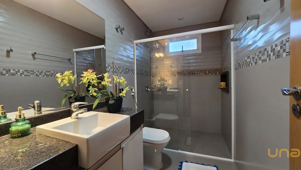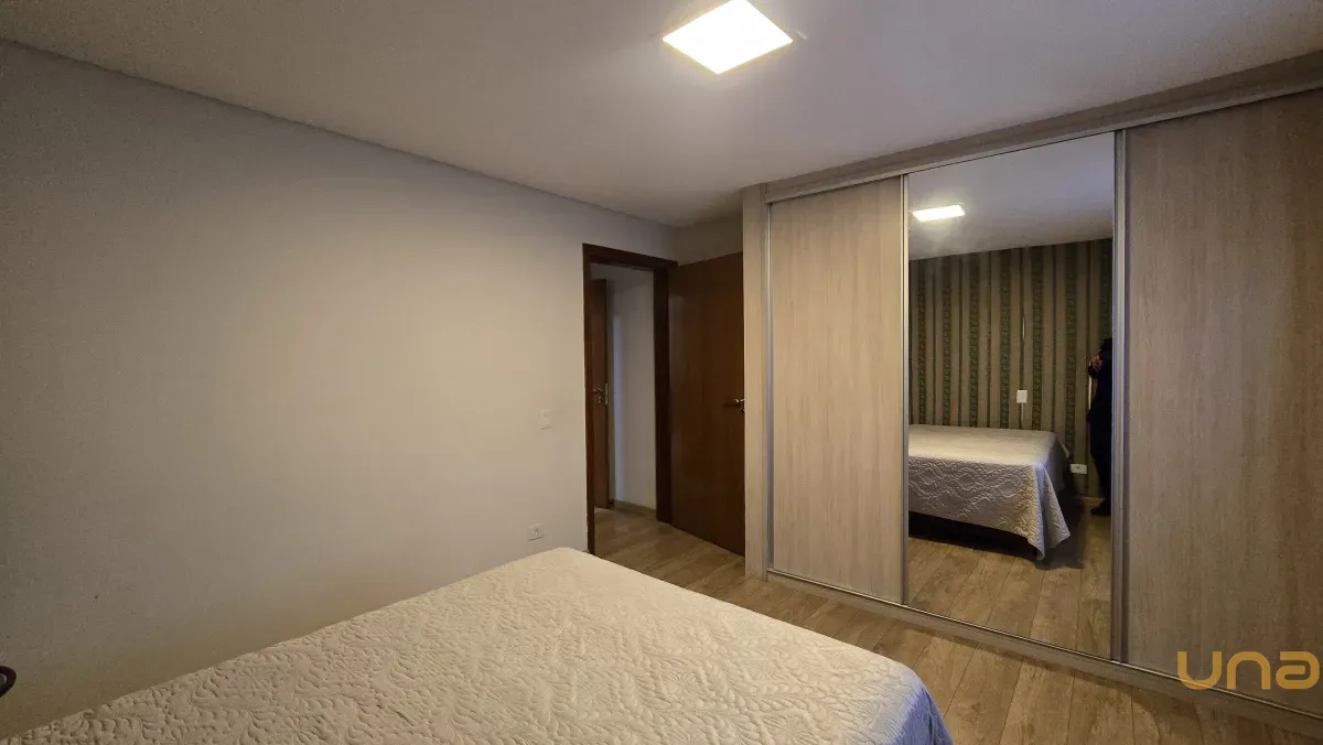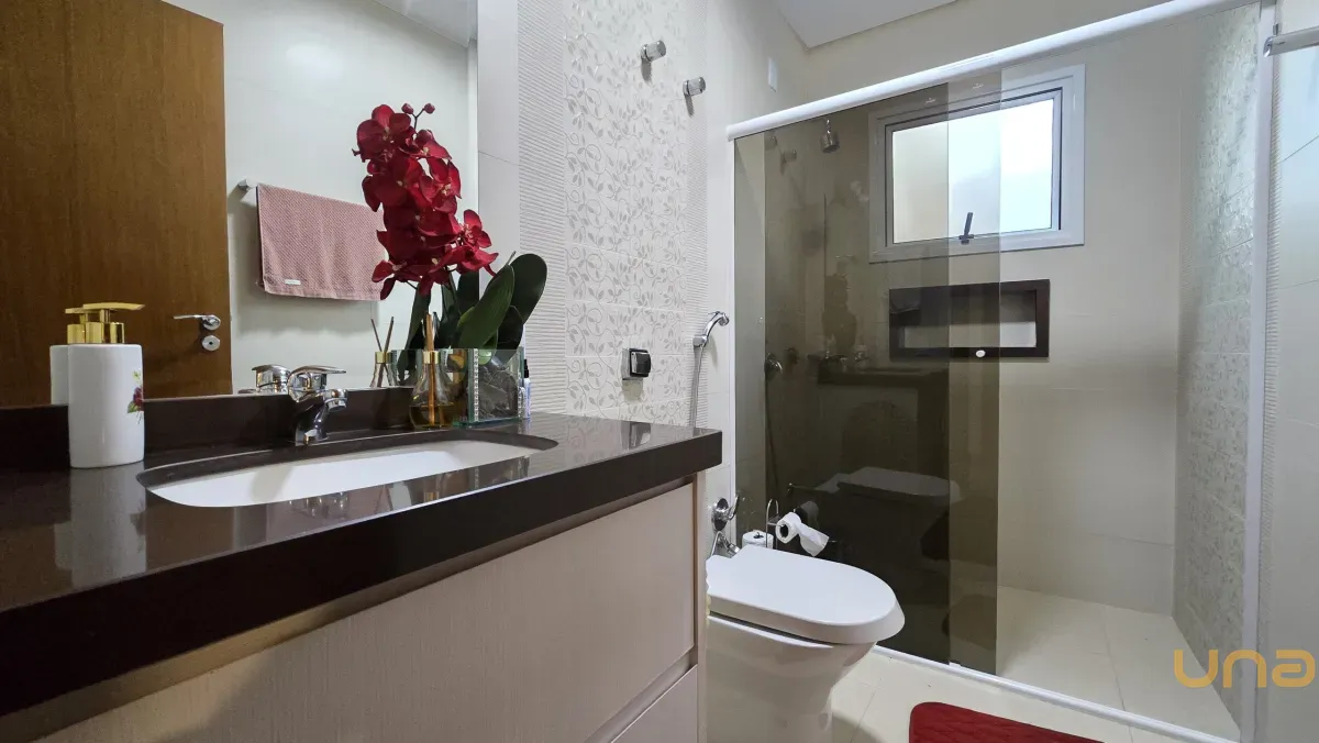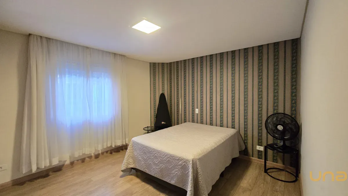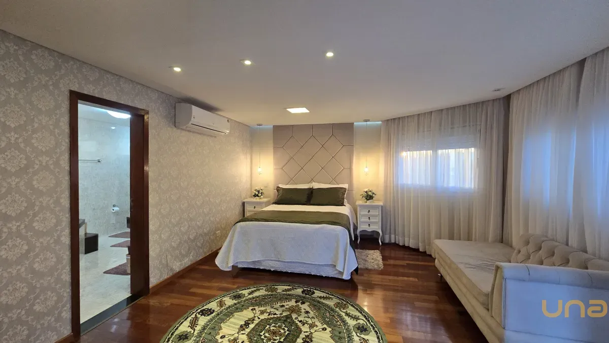 4 dormitórios, sendo 2 suítes, incluindo uma suíte master com banheira de hidromassagem, closet e armários planejados no piso superior.