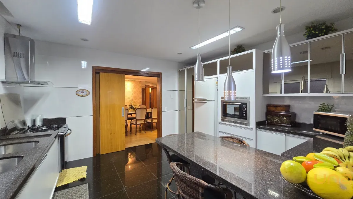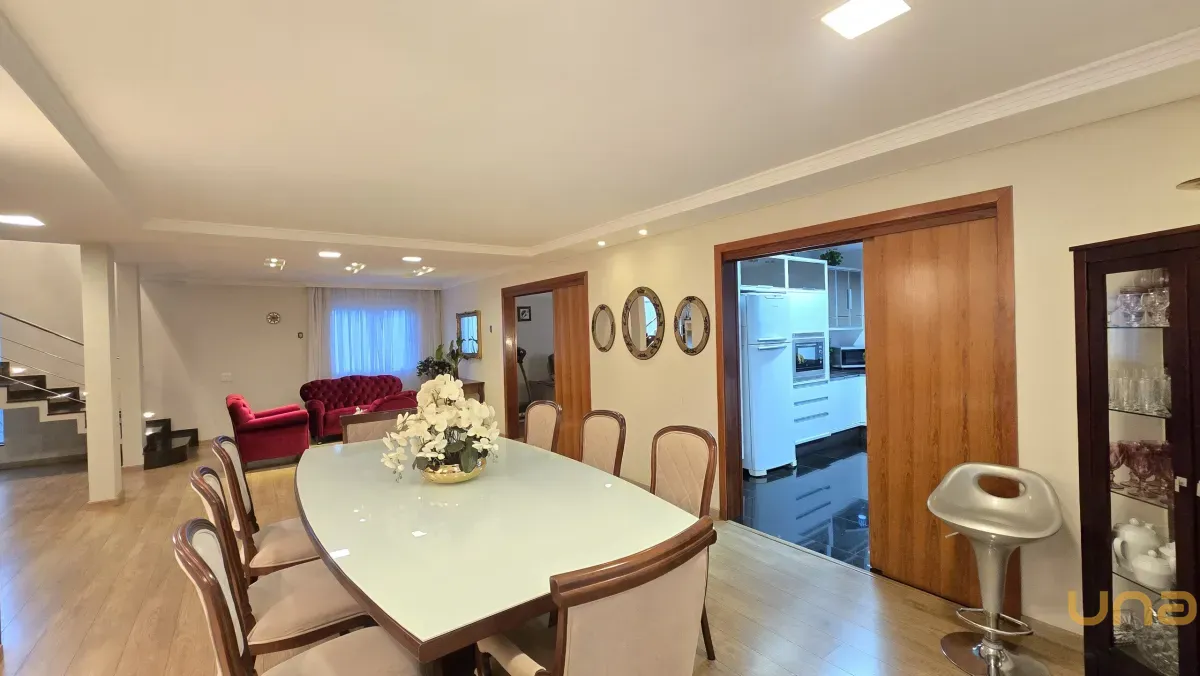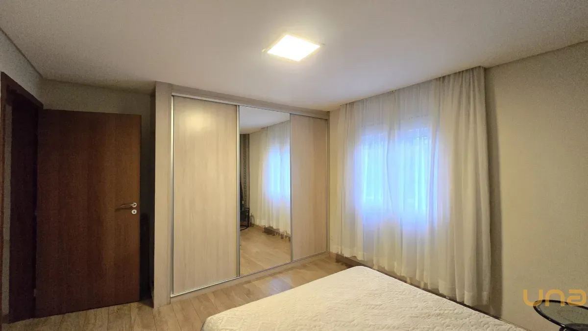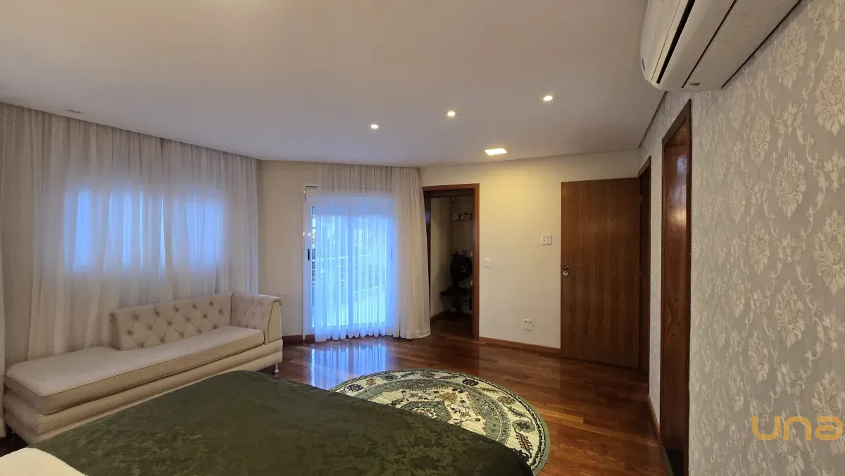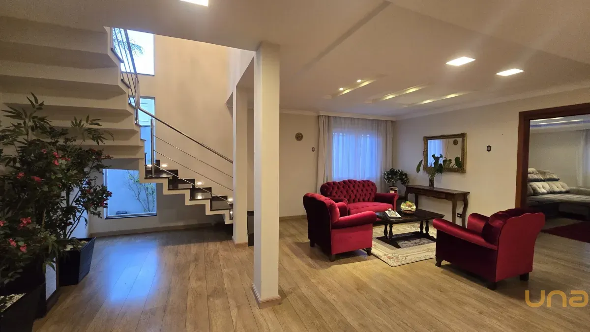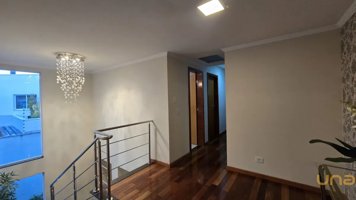 4 dormitórios, sendo 2 suítes, incluindo uma suíte master com banheira de hidromassagem, closet e armários planejados no piso superior.