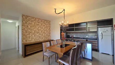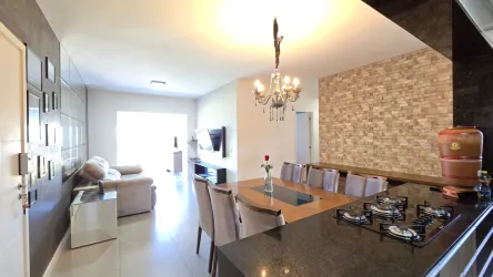 Ampla sala de estar e jantar integradas, proporcionando um ambiente aconchegante e ideal para receber amigos e familiares