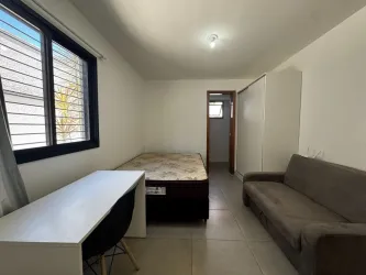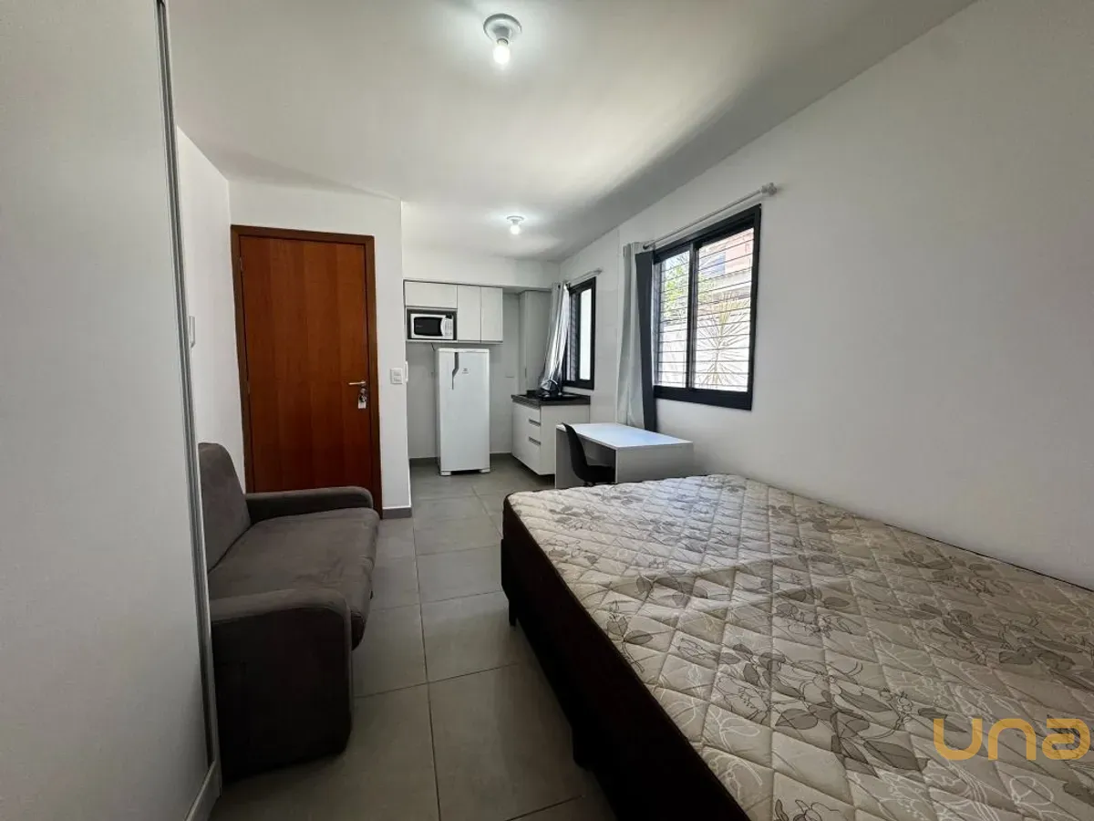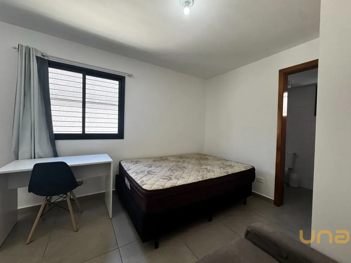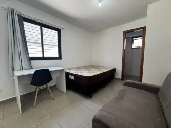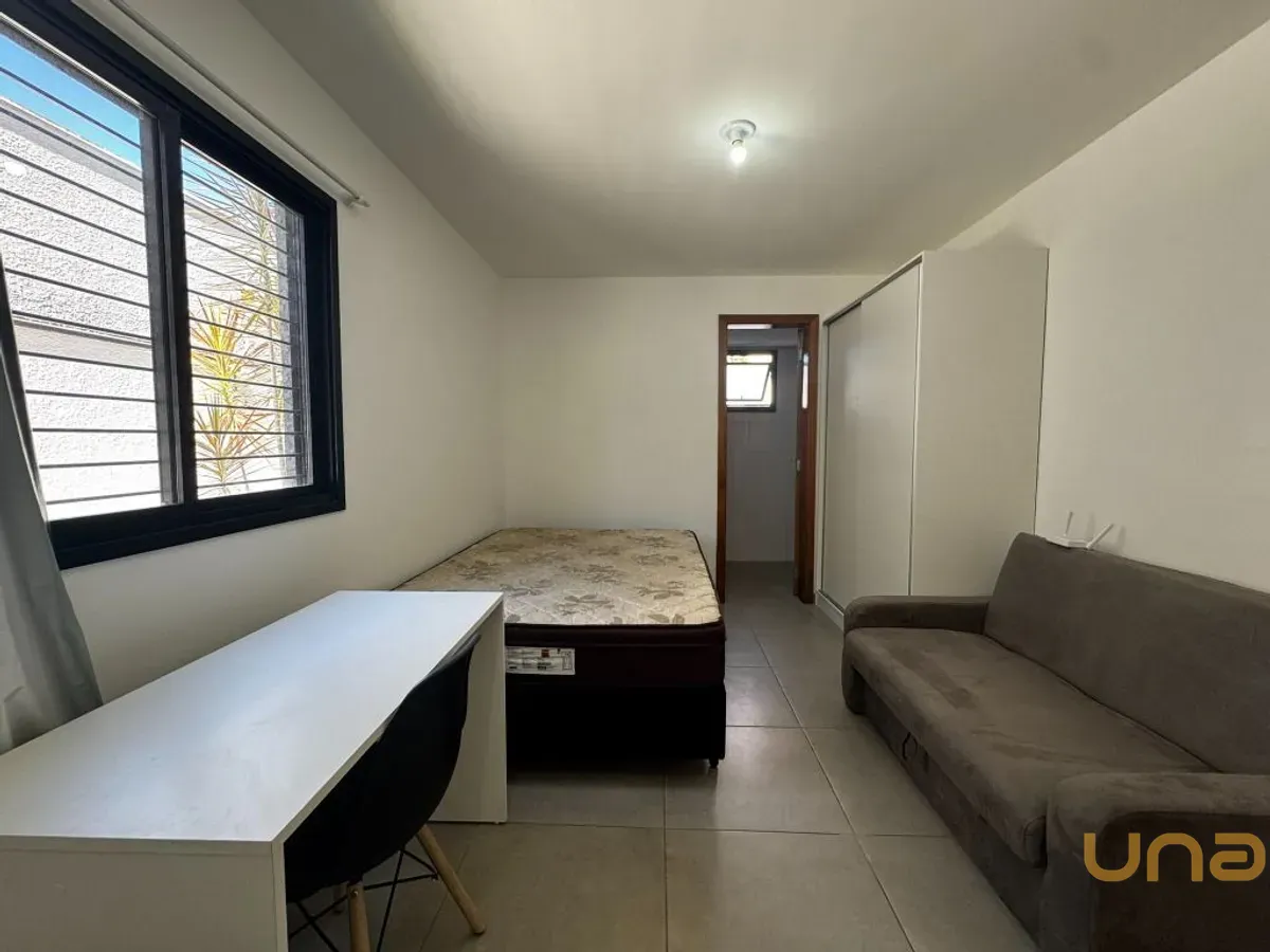 - Sala, Quarto e Cozinha conjugados com Sofá Cama, Mesa de Escritório com Cadeira.